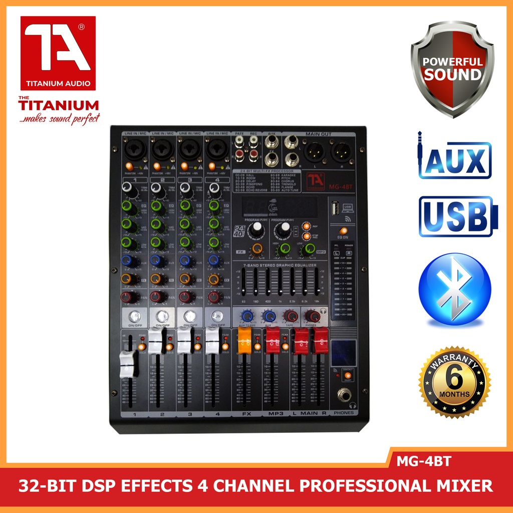 Titanium Audio MG-4BT Mixer / Professional 4 Channel Mixer / 32-BIT DSP Effects / Titanium Audio