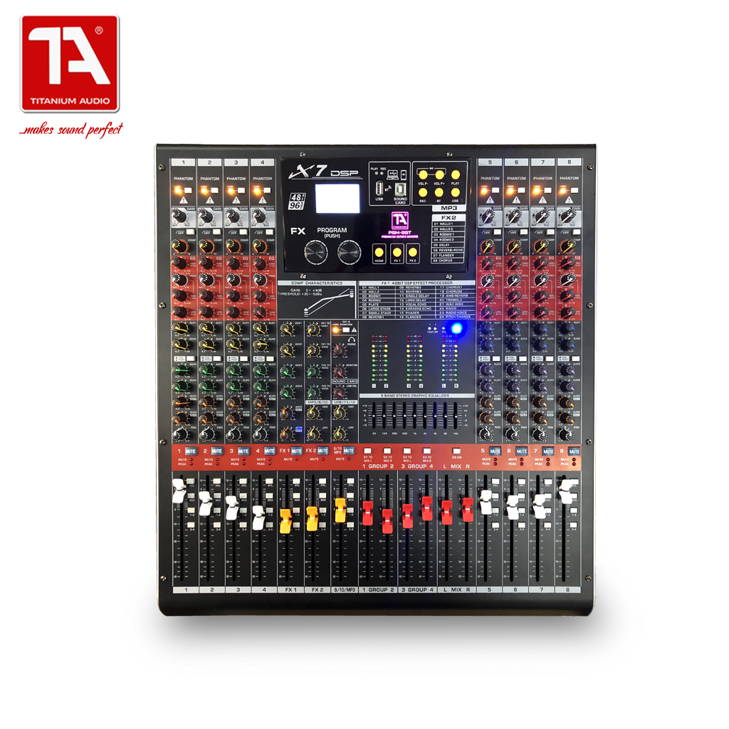 Titanium Audio PSM-8BT Premium Series Mixer X7 DSP Effects / 8 Channel 4 BUS Mixer / Bluetooth