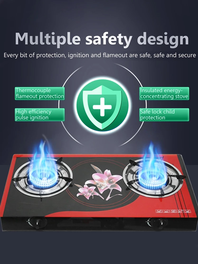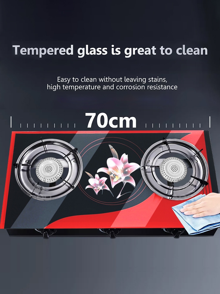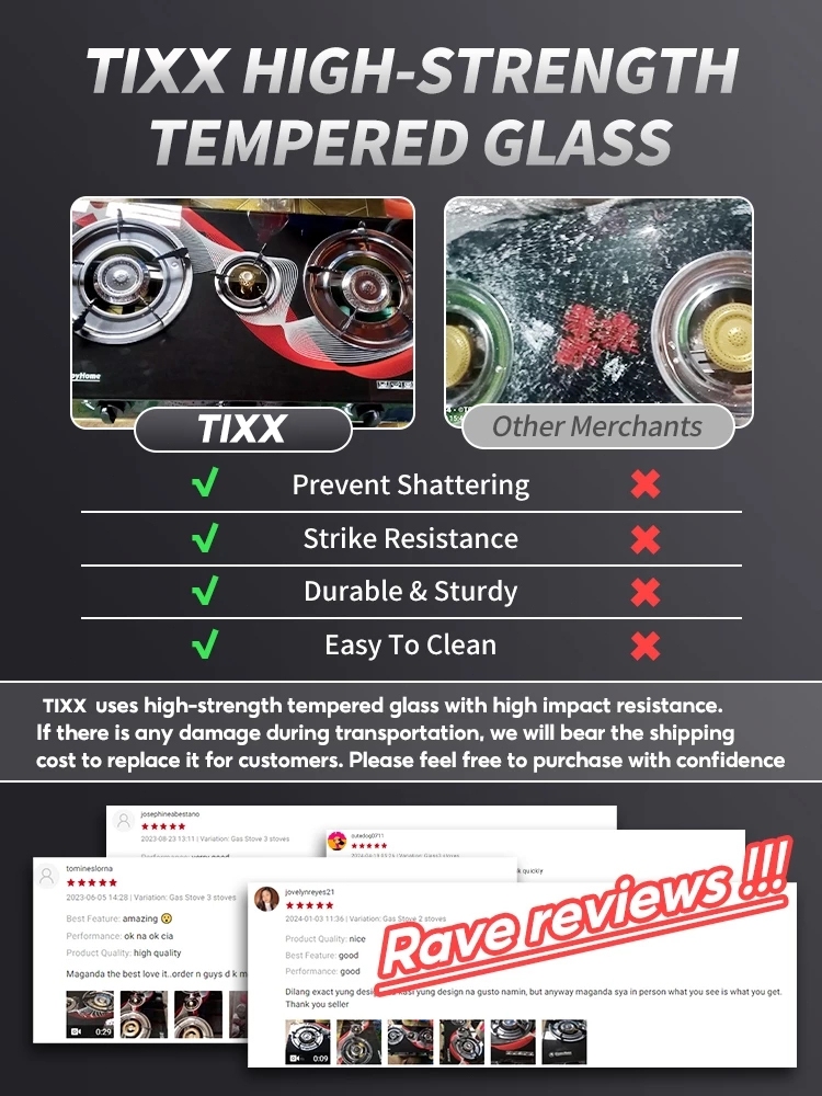 Tixx Gas Stove 4.2KW Ultra Firepower Double Burner Punch-Free Glass Panel (gas & natural gas stove)