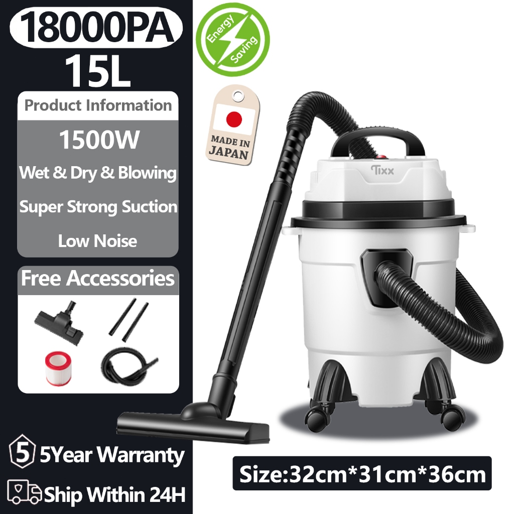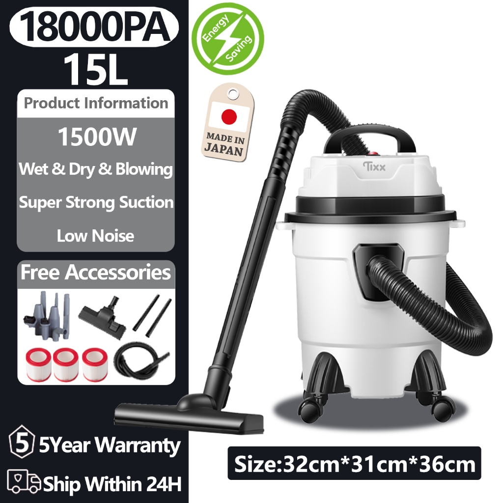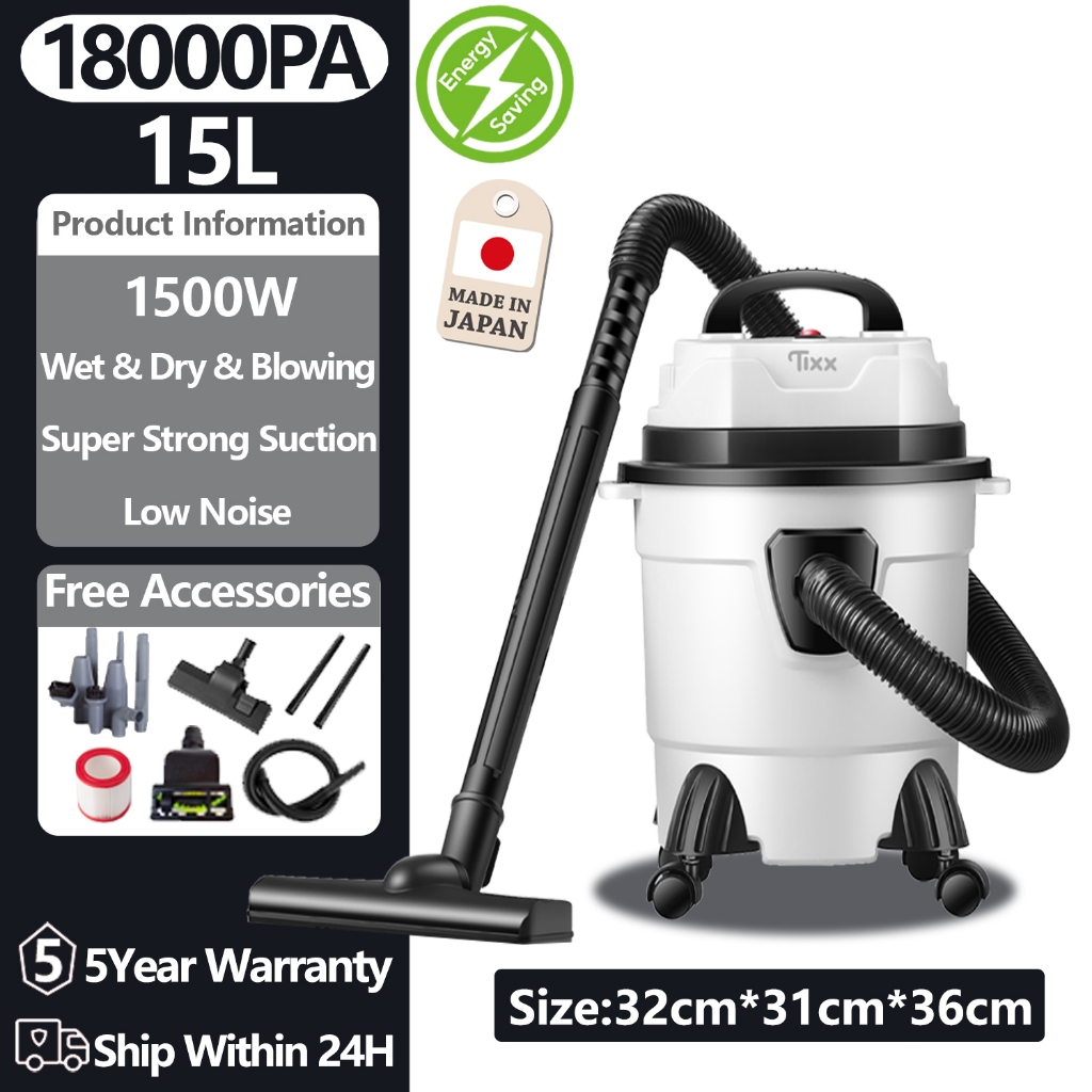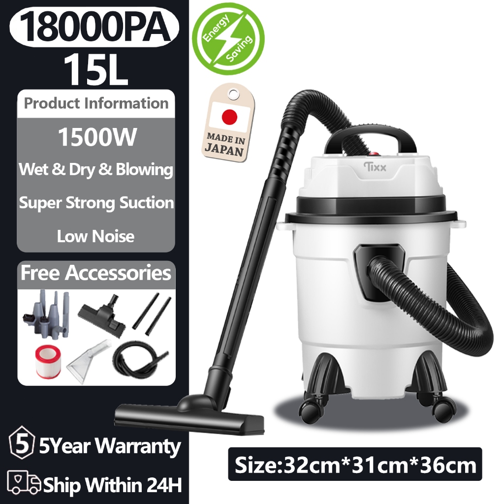 Tixx Vacuum Cleaner For Home Dry/Wet/Blow 3-in-1 15L/1500W White Ultra Strong Suction Power
