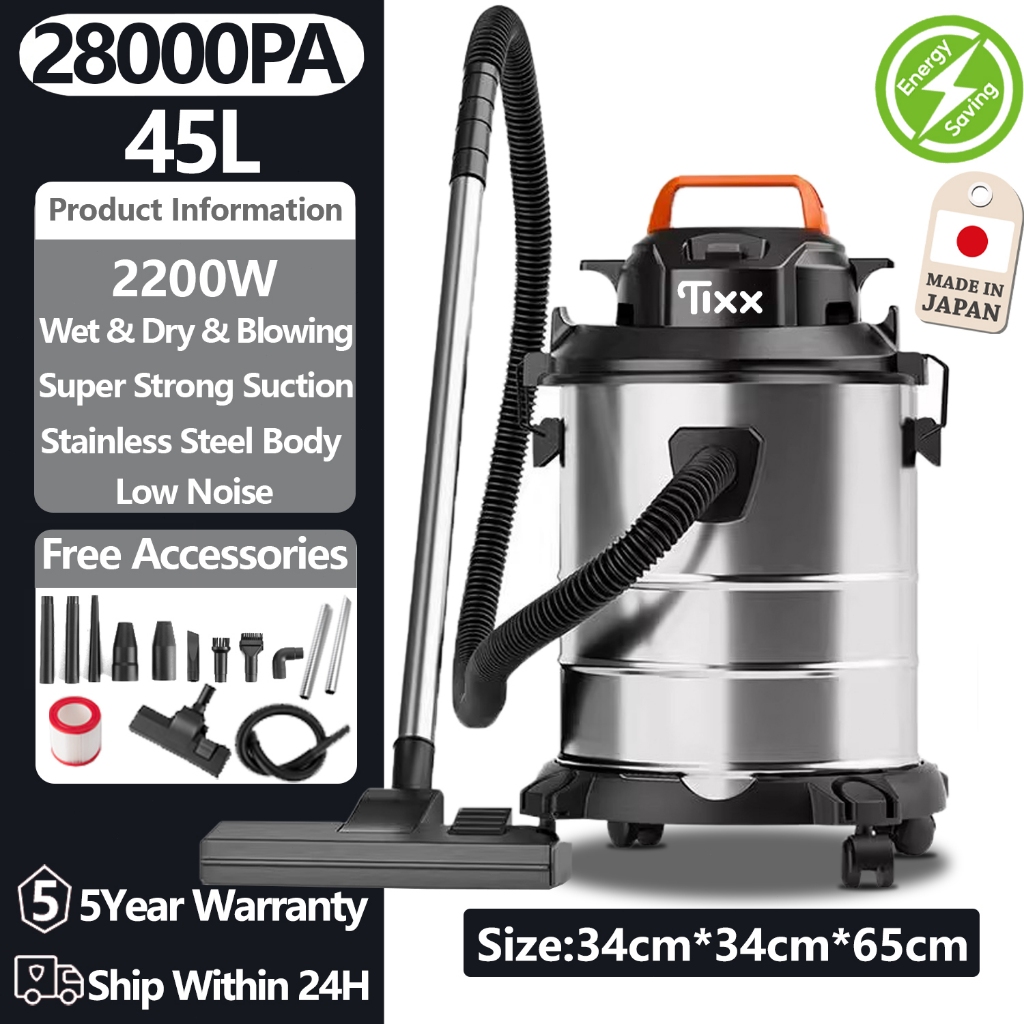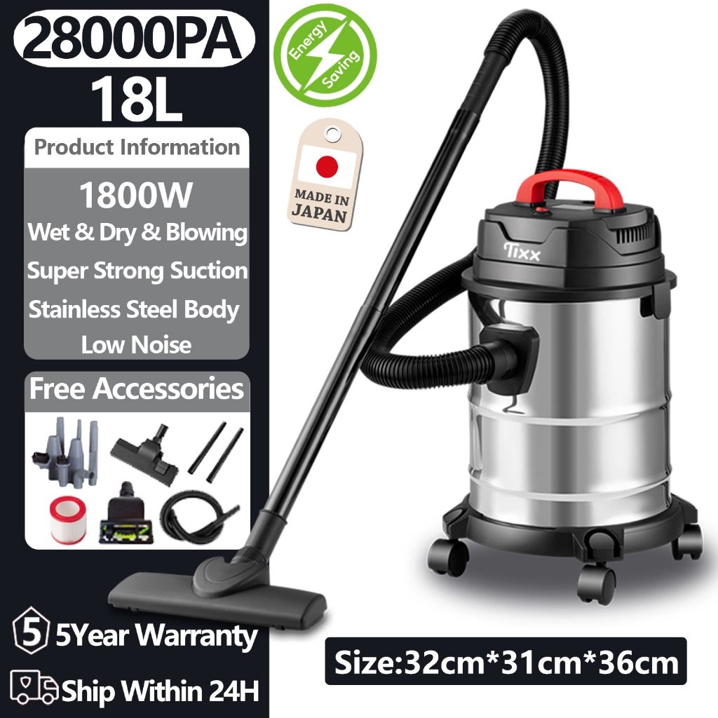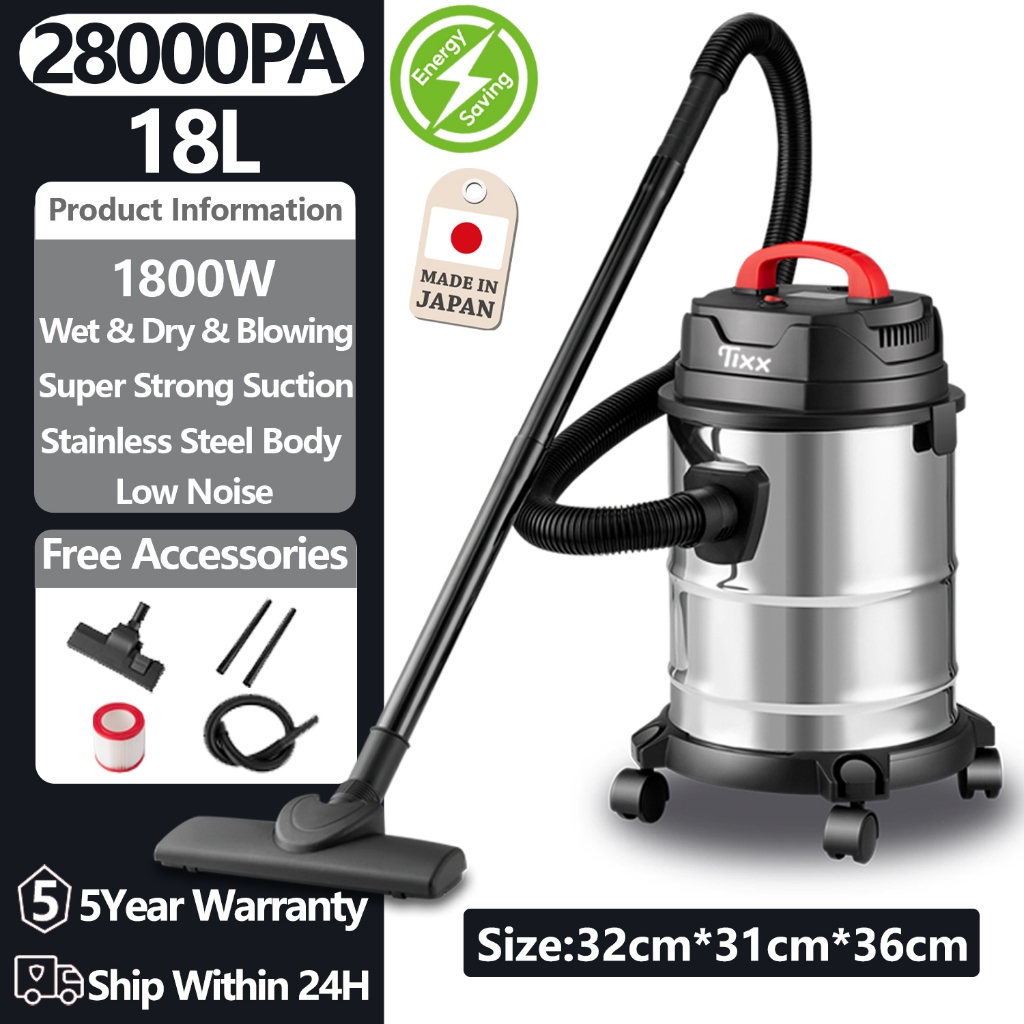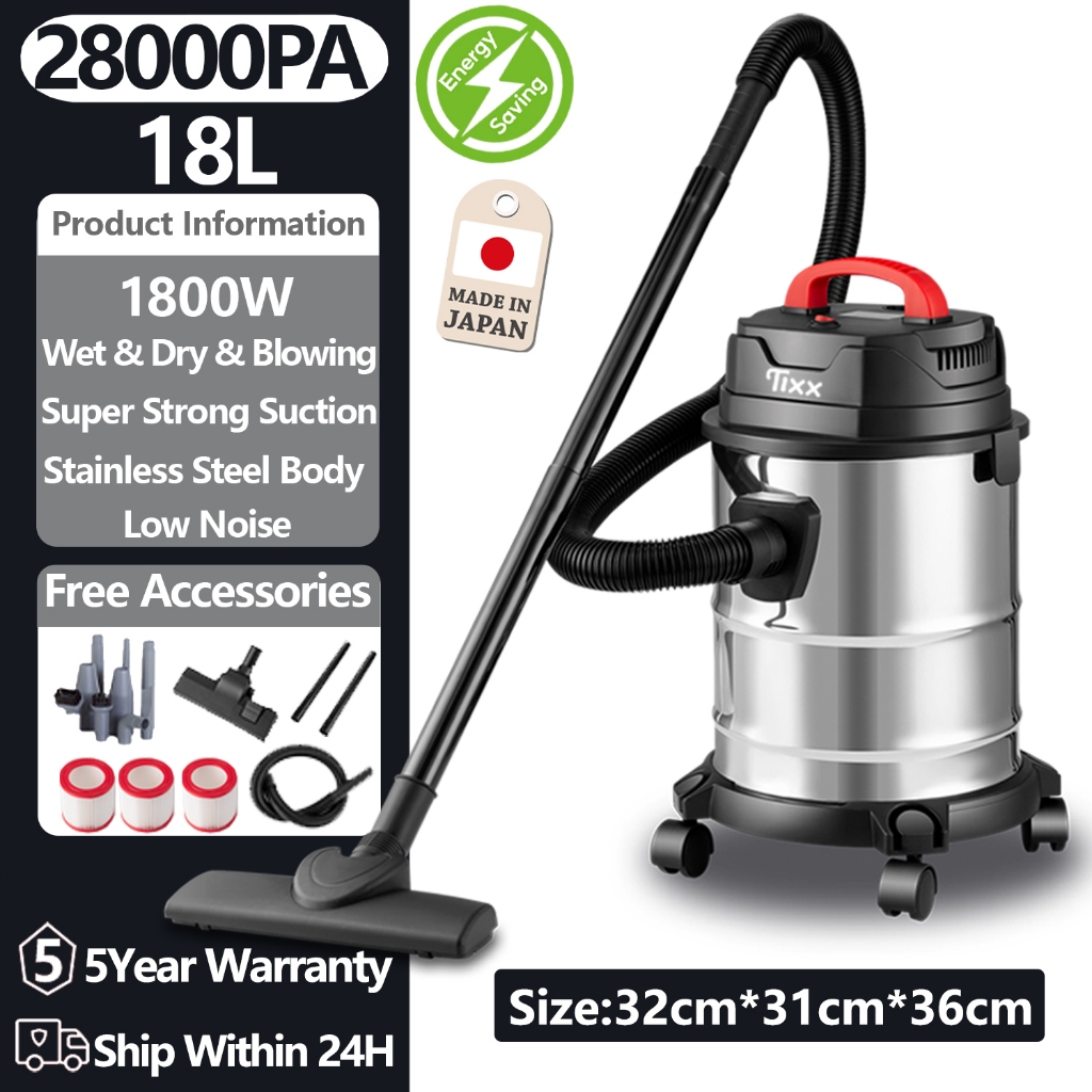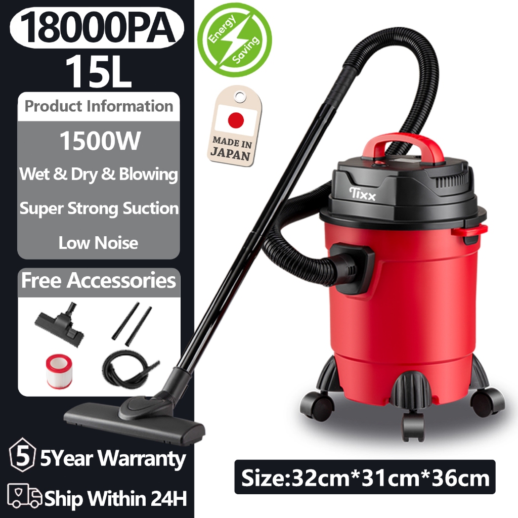Tixx Vacuum Cleaner For Home Dry/Wet/Blow 3-in-1 15L/1500W White Ultra Strong Suction Power