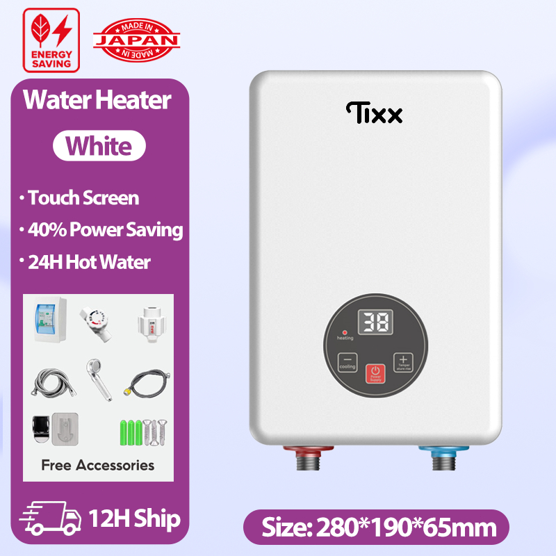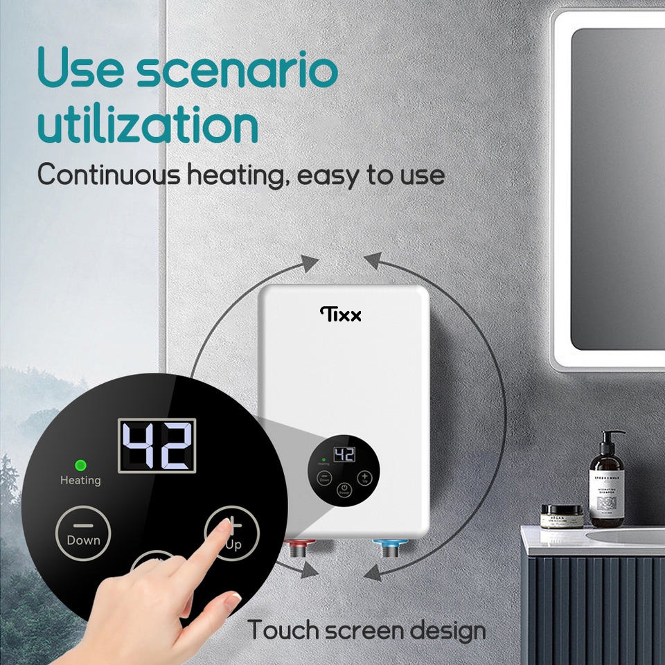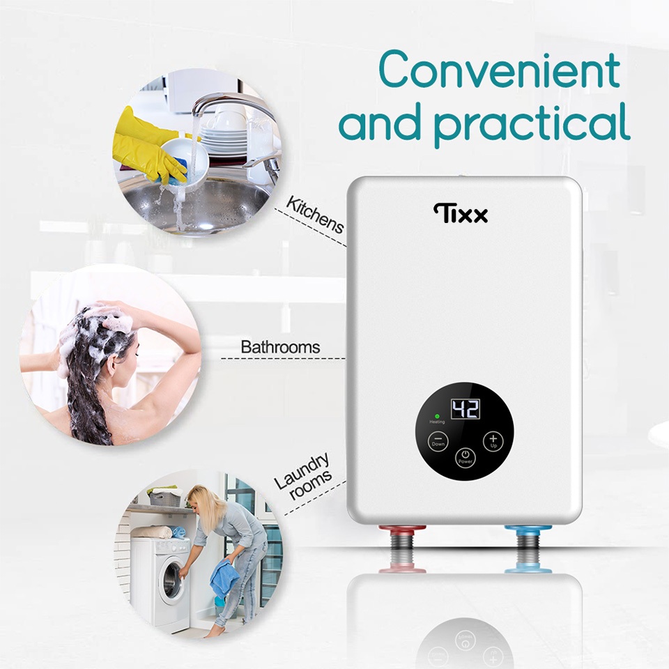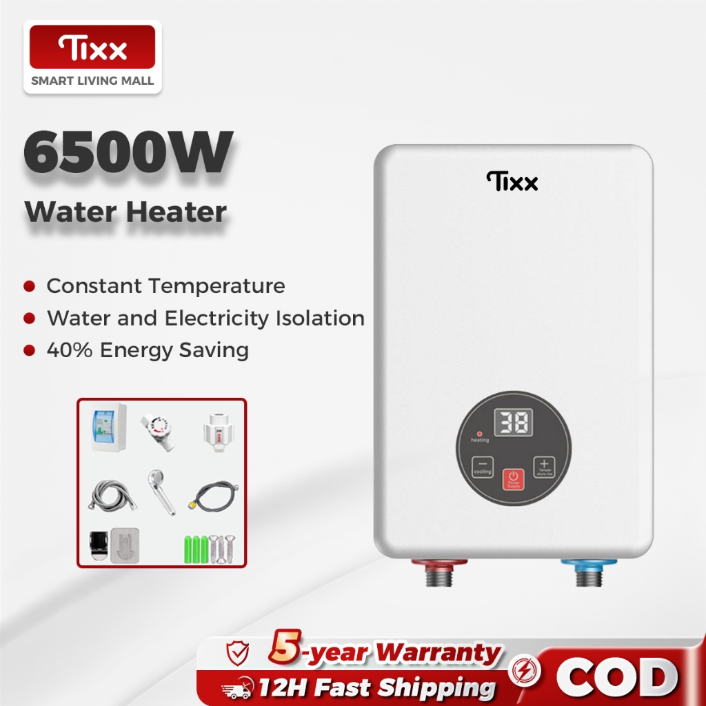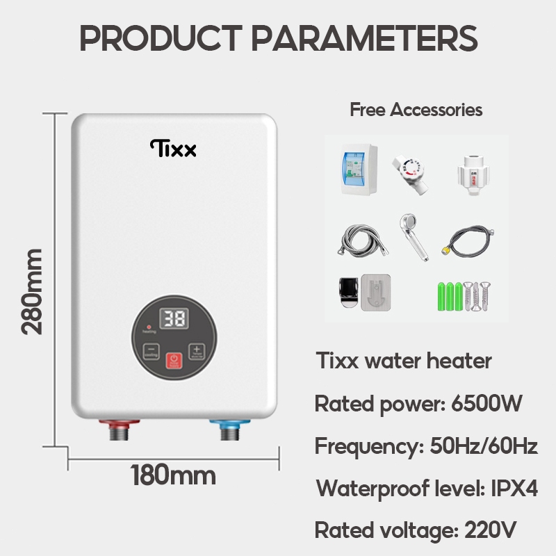Tixx Water Heater Shower LCD Touch Screen 6500W Instant Heating Power Failure Protection Water Proof