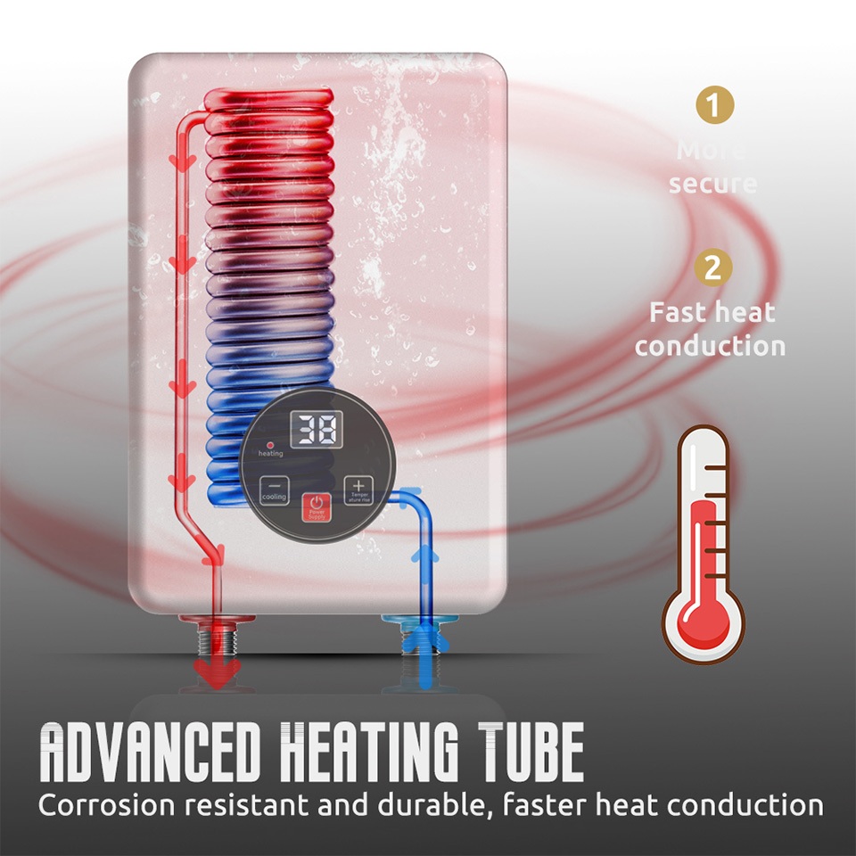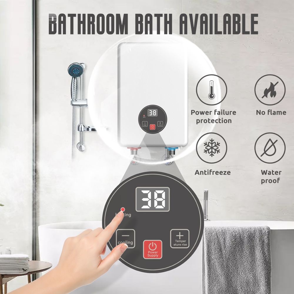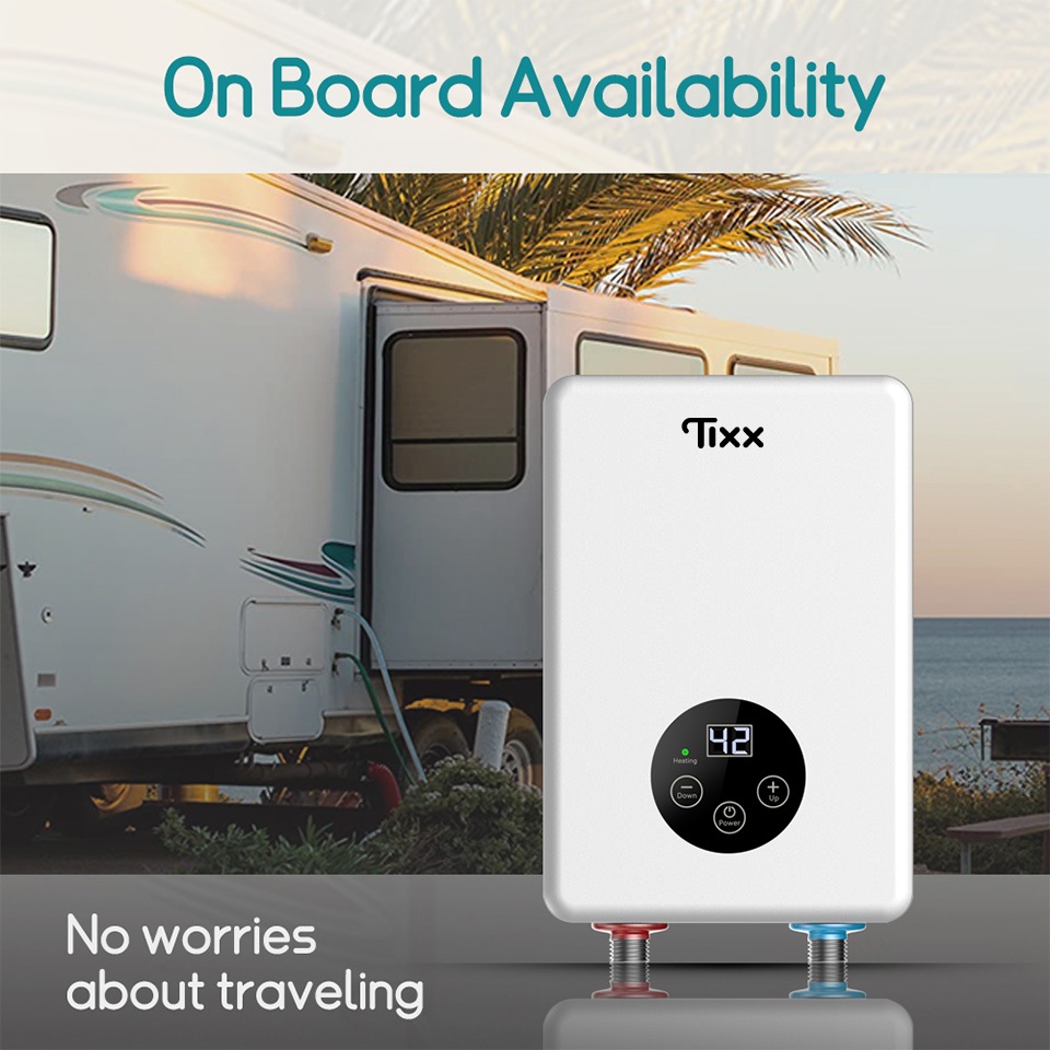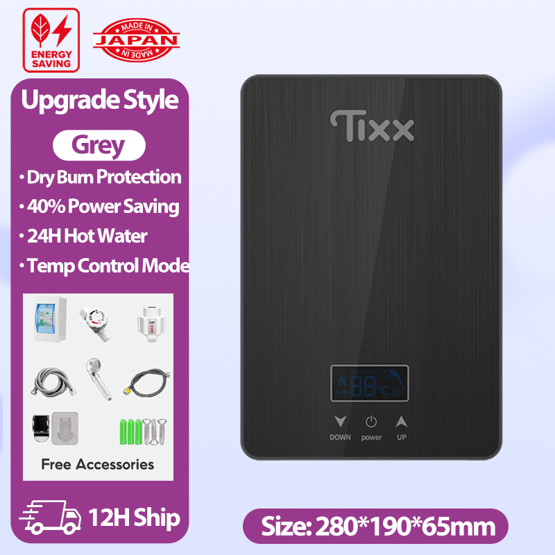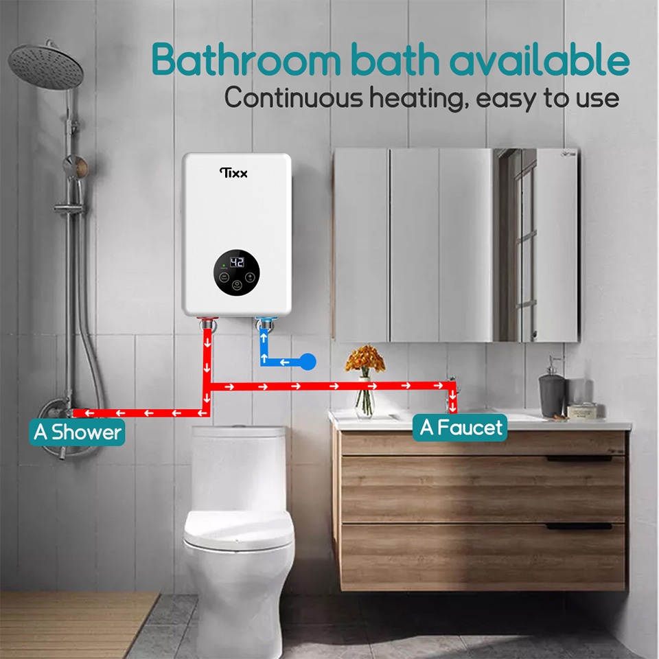 Tixx Water Heater Shower LCD Touch Screen 6500W Instant Heating Power Failure Protection Water Proof