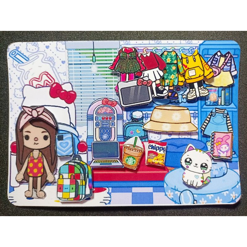 Toca Boca Paper Doll Hello kitty blue laminated attached with Velcro tape