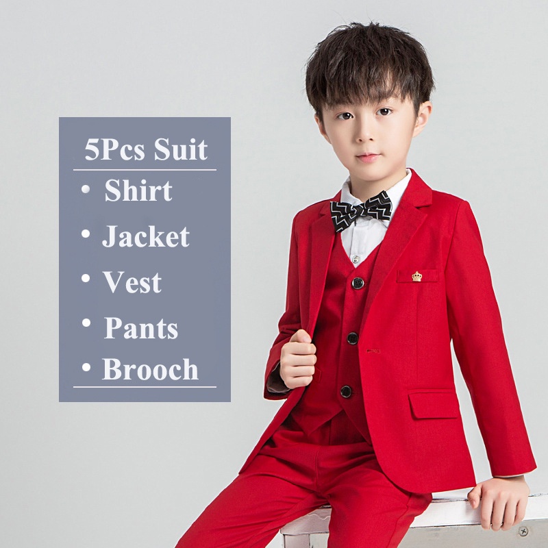 Toddler Boys Formal Suit Tuxedo 5 Piece Suit for Kids Formal Set Wedding Ring Bearer Outfit Blazer Vest Shirt Pants Bow Tie coustume Dresswear