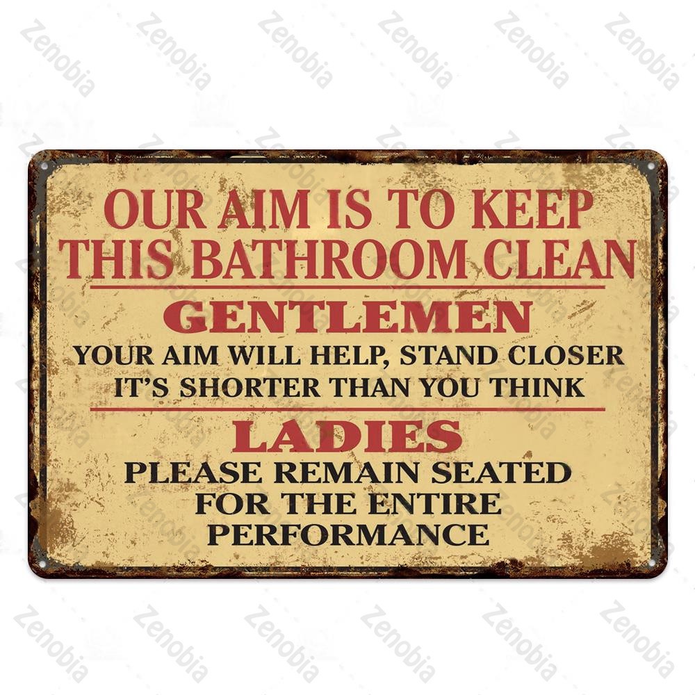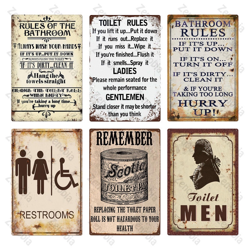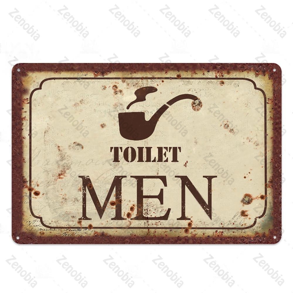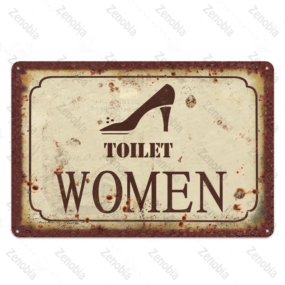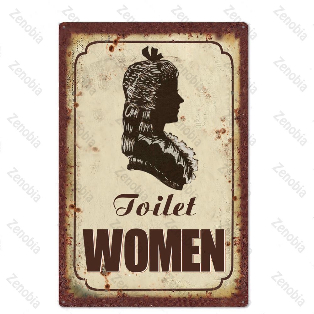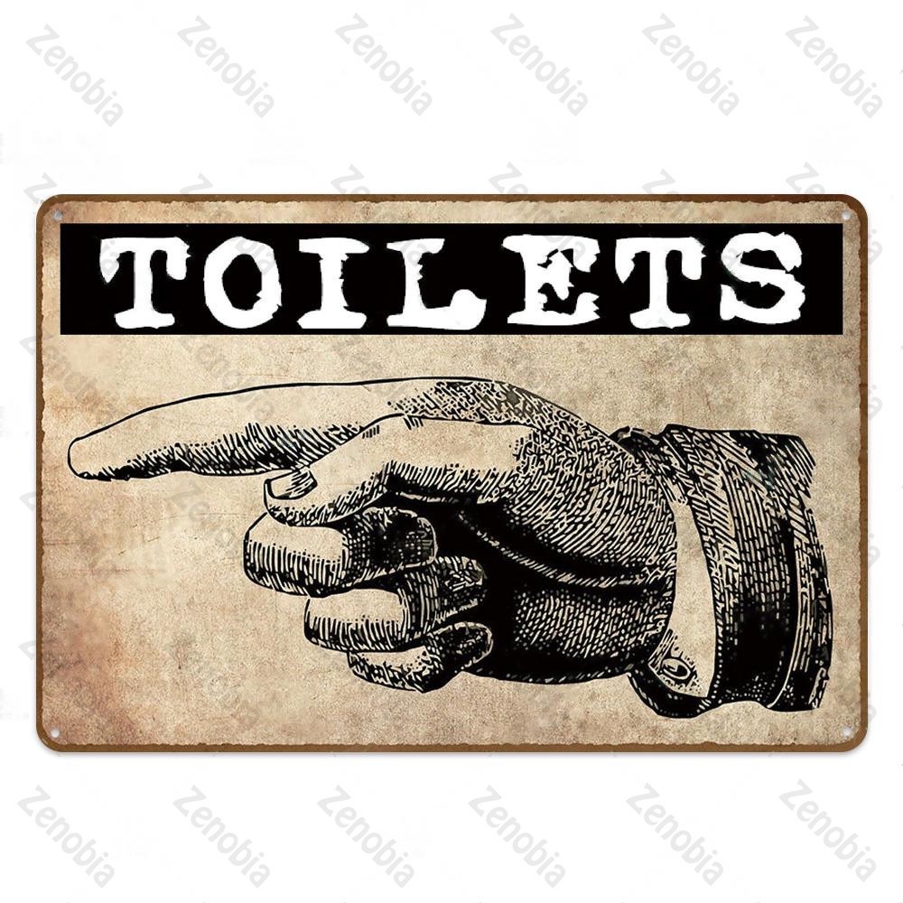 2024 Toilet Sign Plaque Metal Vintage Bathroom Metal Sign Tin Sign Wall Decor for Toilet Bathroom Restroom