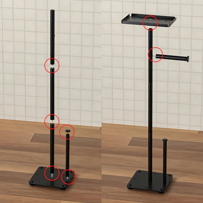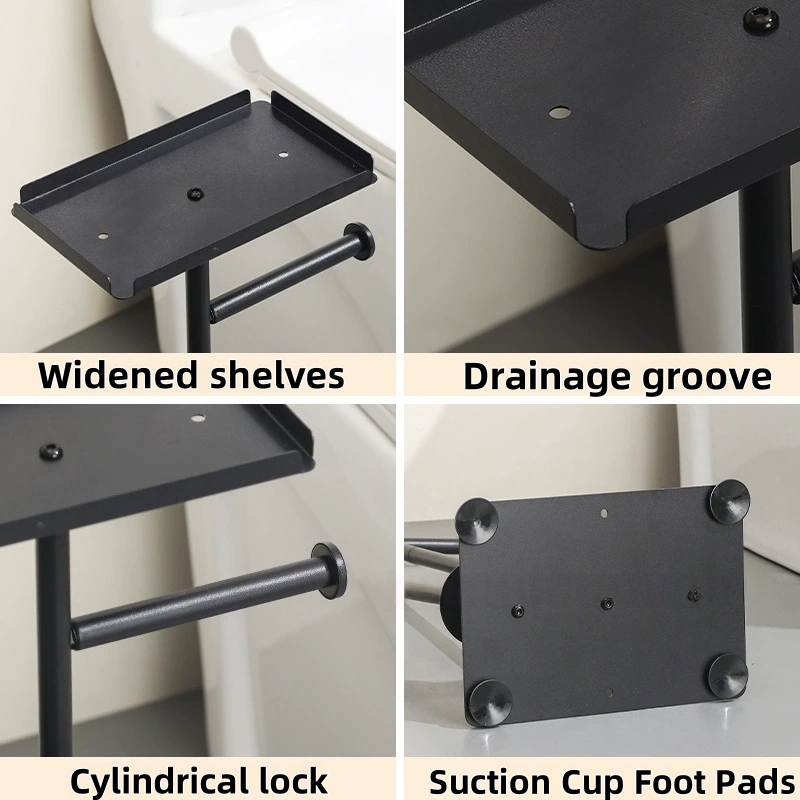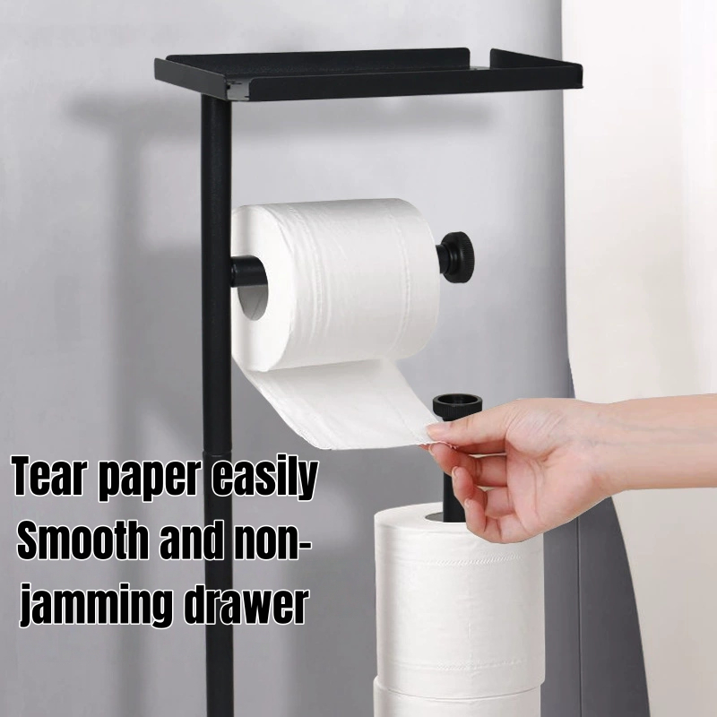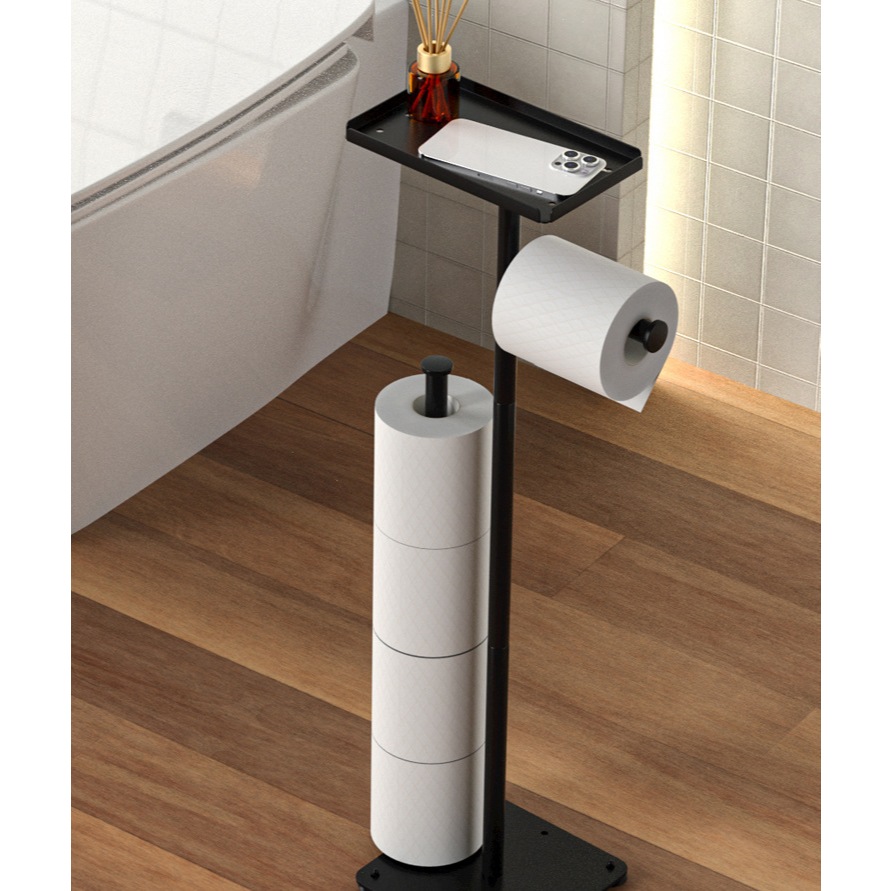 Floor-Standing Stainless Steel Toilet Paper Holder with Phone Tray - Bathroom/Kitchen Organizer