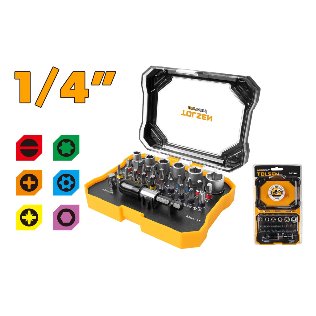 Tolsen 28PCS Screw Bit And Socket Set w/ Hard Case (1/4" Quick Release Holder) 20376