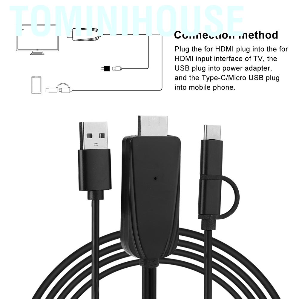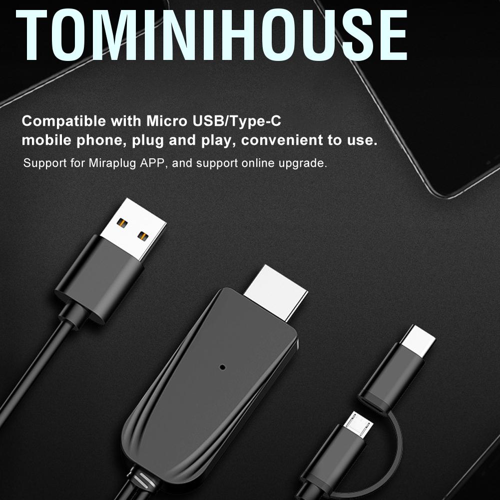 Tominihouse Screen Mirroring Cabl HD 1080P Support /Miraplug APP Cable USB/Type-C 2M For TV