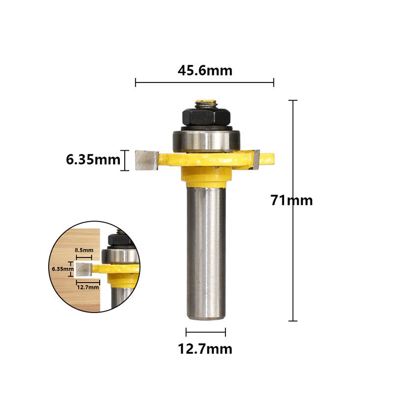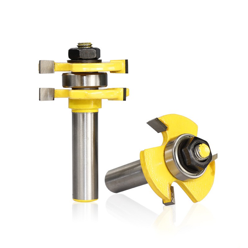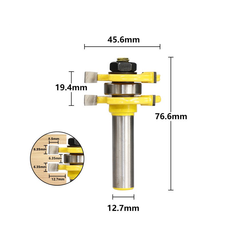 Tongue and Groove Set,Router Bit Set,Wood Door Flooring 3 Teeth Adjustable ,1/2 Inch Shank T Shape W