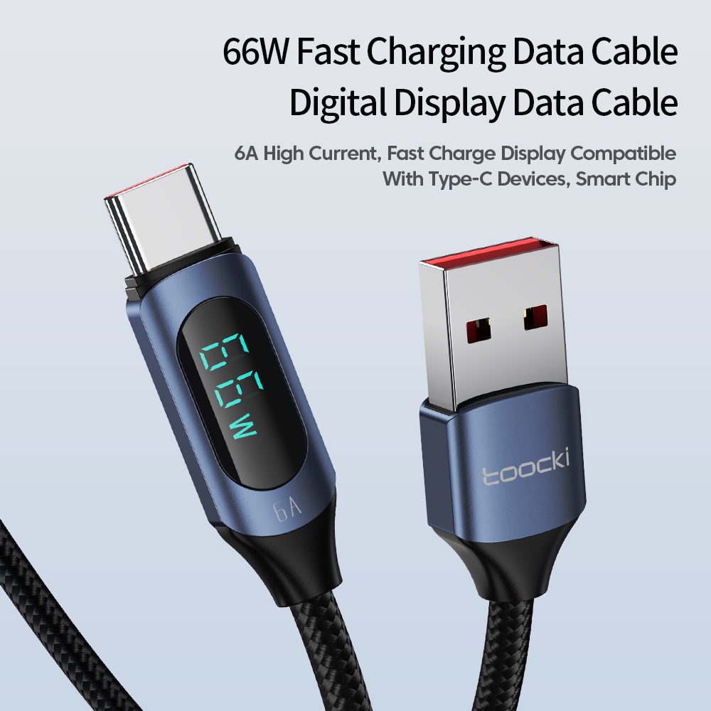 Toocki 100W Digital Display USB Type C Cable Fast Charge 6A 66W USB C Charging Data Cable For Xiaomi Samsung USB Cable Wiresires