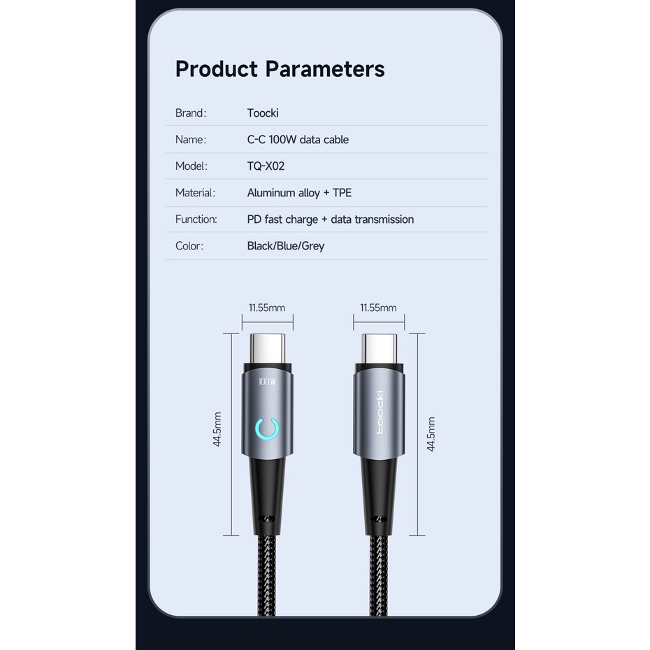 Toocki 100W Type C To Type C Cable with LED Light Fast Charging 60W C-C Data Line 20W PD C-L Charge Wire