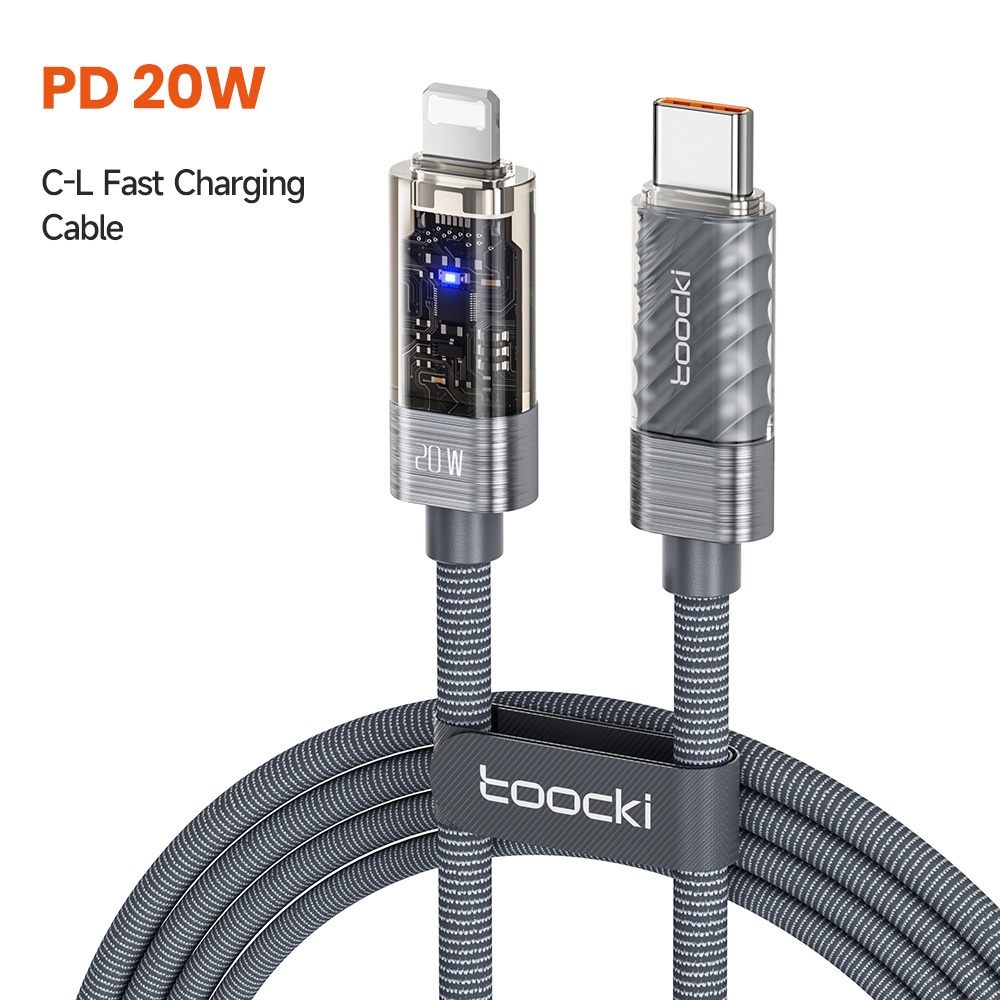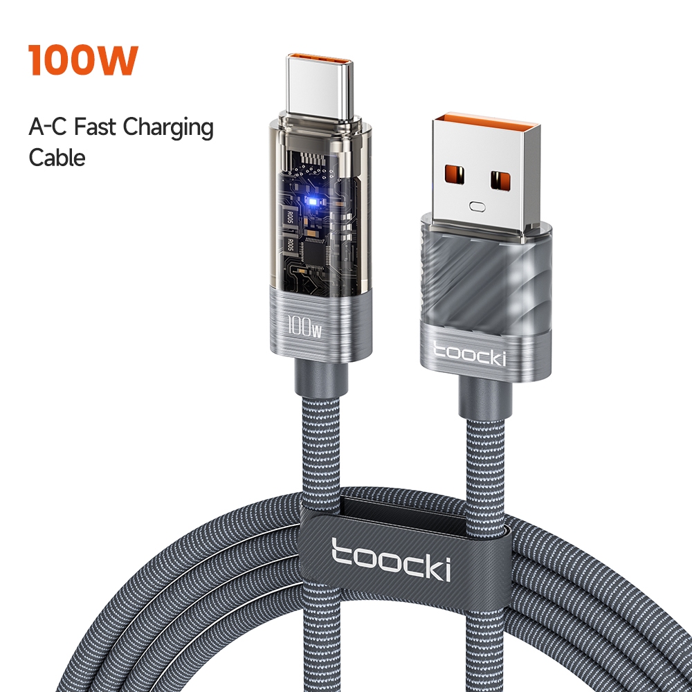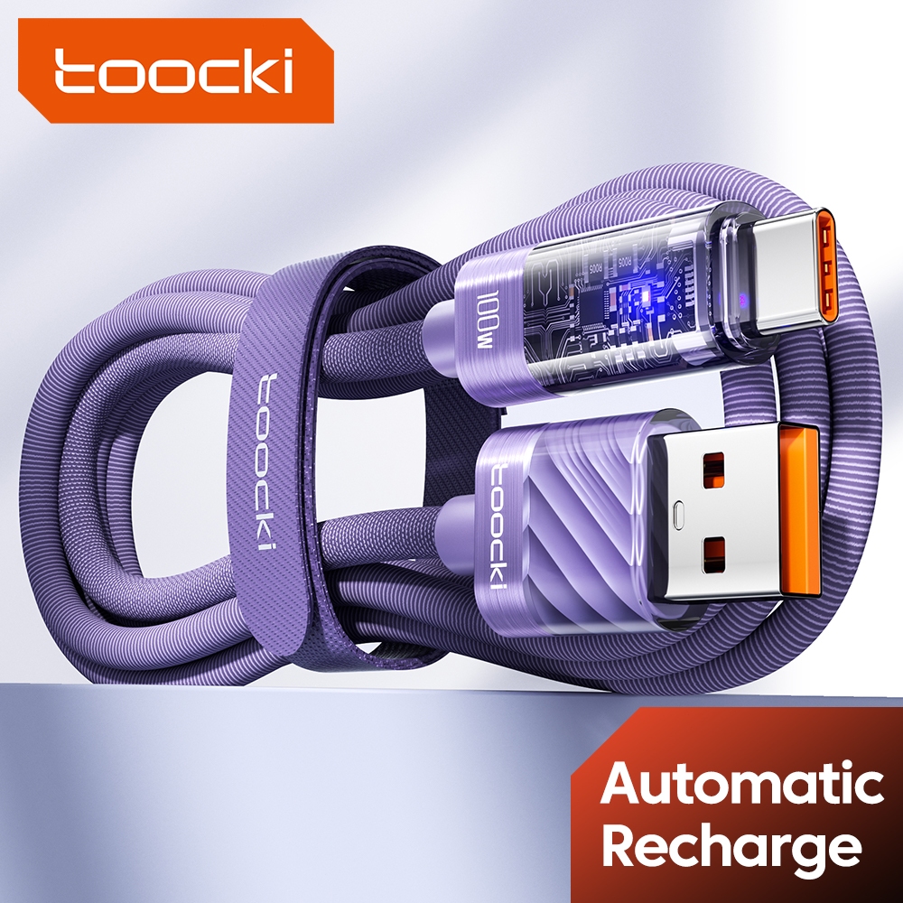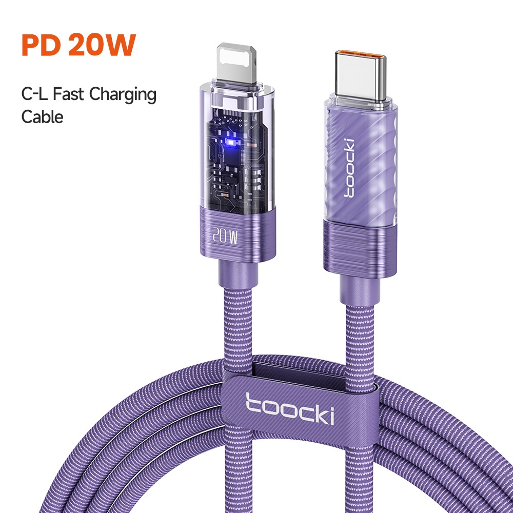 Toocki 100W Type C To Type C LED Cable Quick Charge PD100W USB Type C A-L C-L Transparent Automatic Power-Off Data Wire For Mobile Phone Tablet Laptop