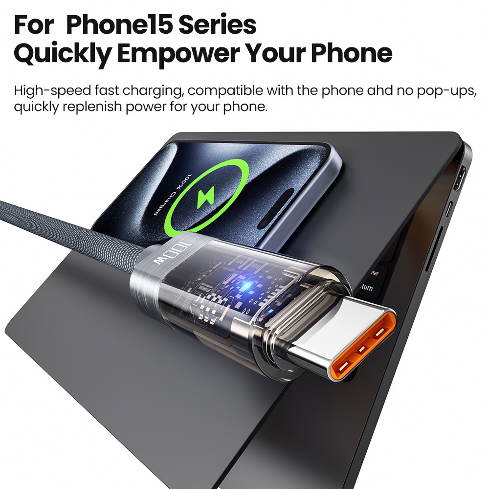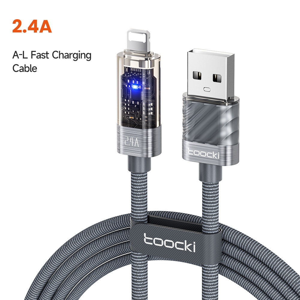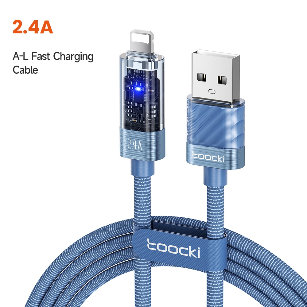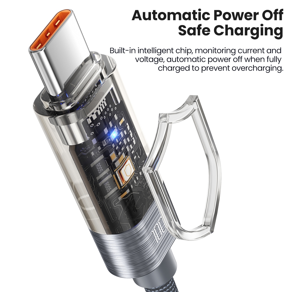 Toocki 100W Type C To Type C LED Cable Quick Charge PD100W USB Type C A-L C-L Transparent Automatic Power-Off Data Wire For Mobile Phone Tablet Laptop