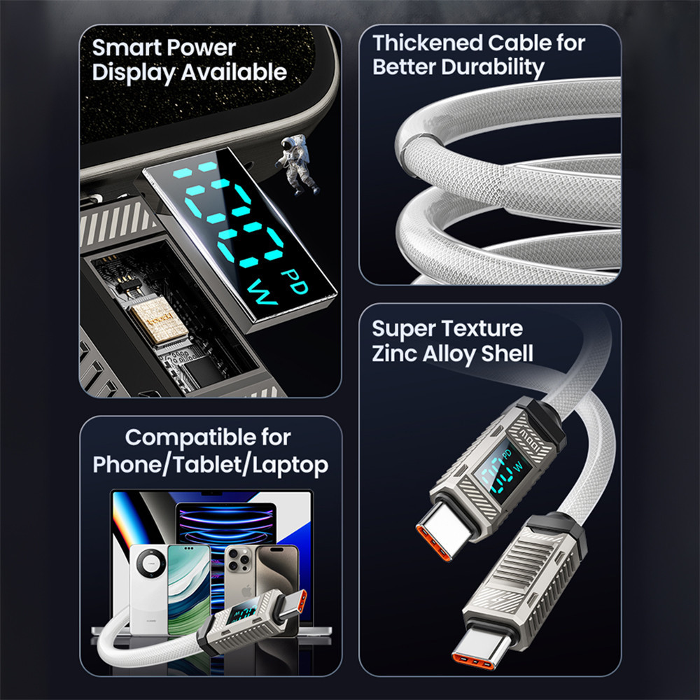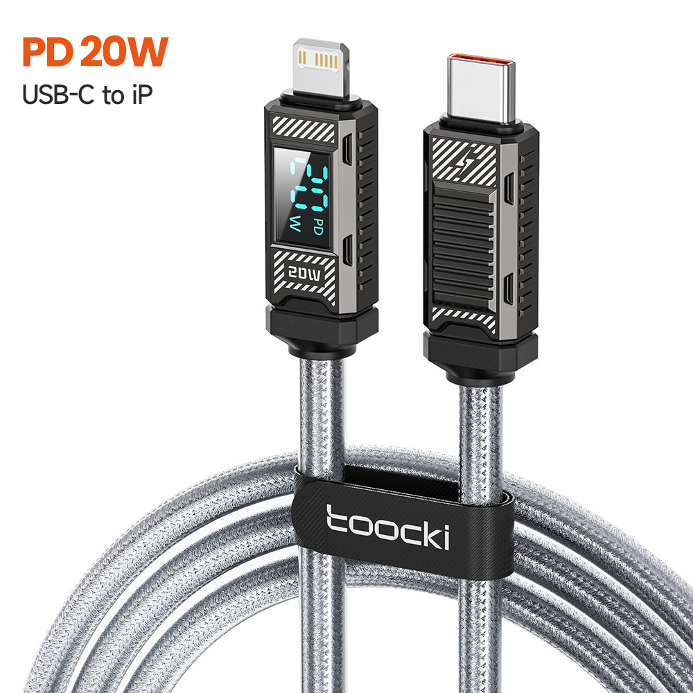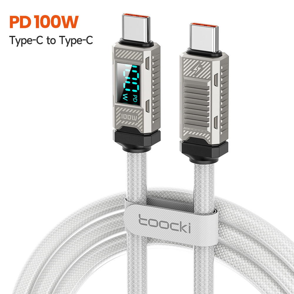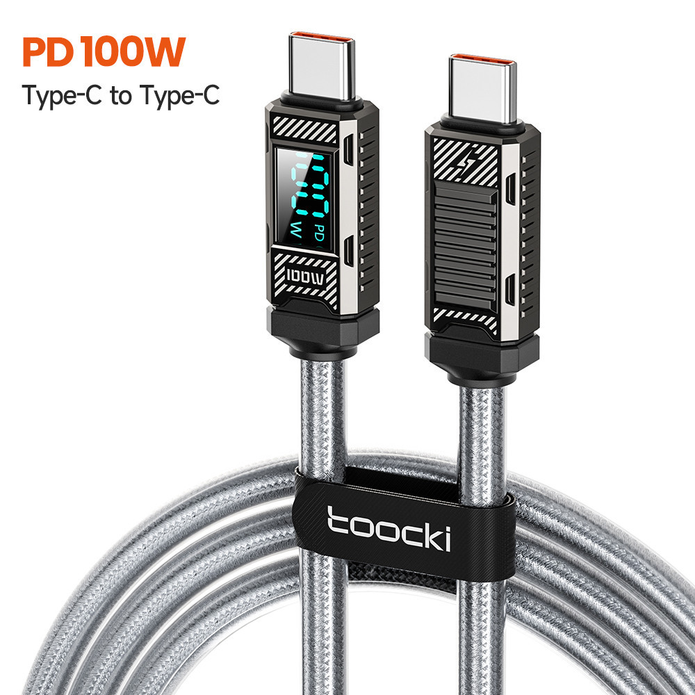 Toocki PD 100W Type-C To Type-C LED Digital Display Cable Fast Charging 20W Type C To 1OS Zinc Alloy Shell Cable USB Type C Data Wire