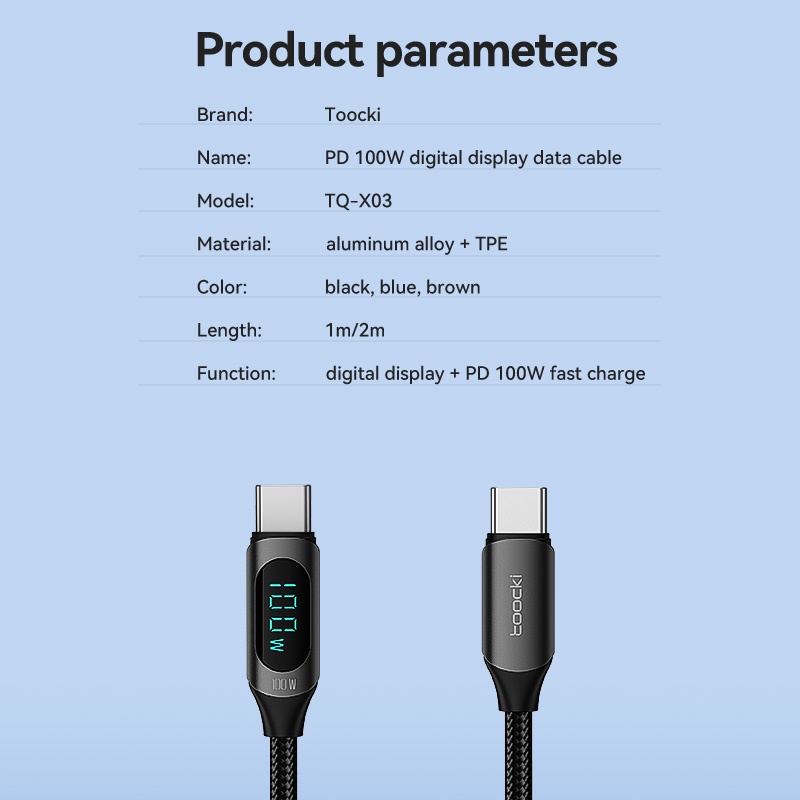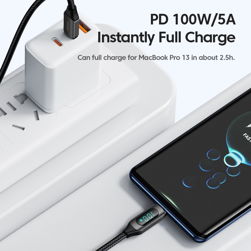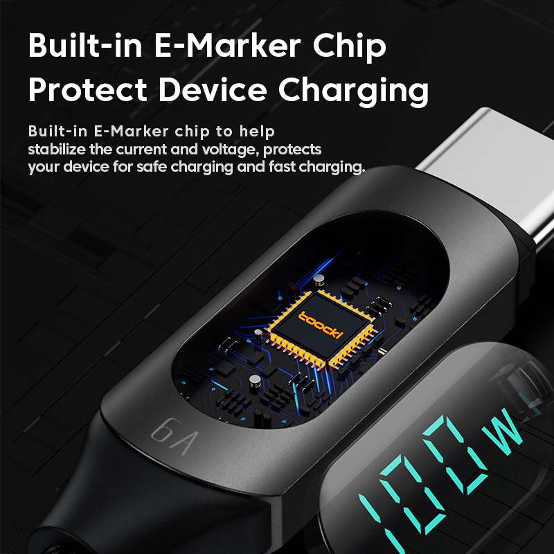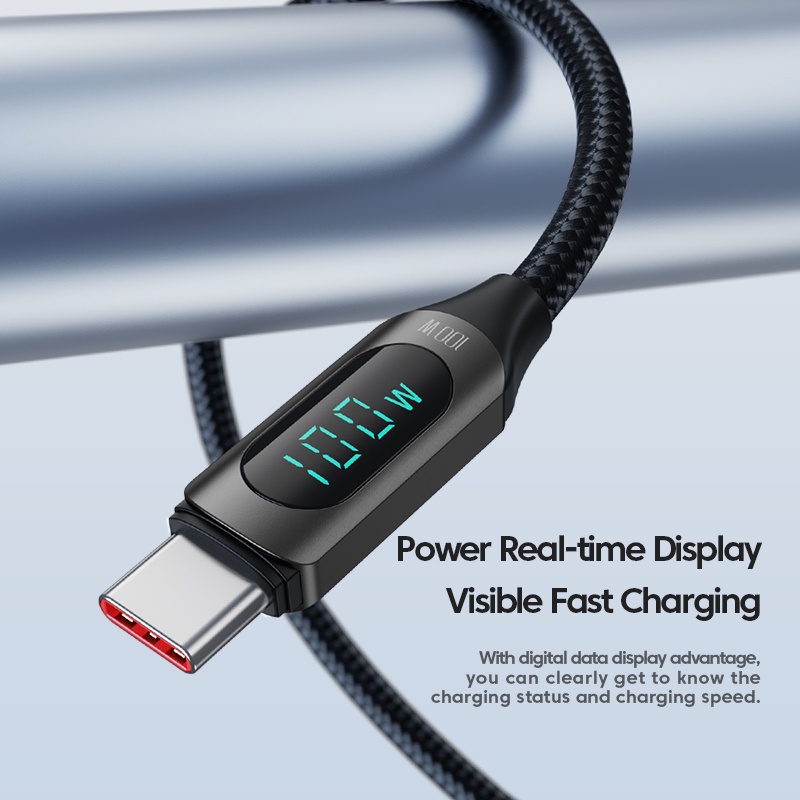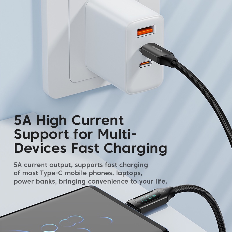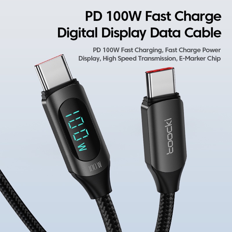 Toocki baseus cord 100w super fast charge LED Digital Displaying 5A type c charger cord usb/ type c cablefor Android Phone