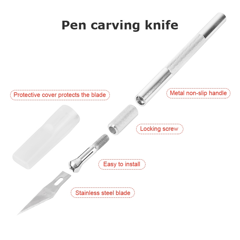 Tool Carving Knife Pen Sharpener/Free 6 Sharp Hand-Carving Blades/Craft Razor Woodcarving/Eraser Stamp Making