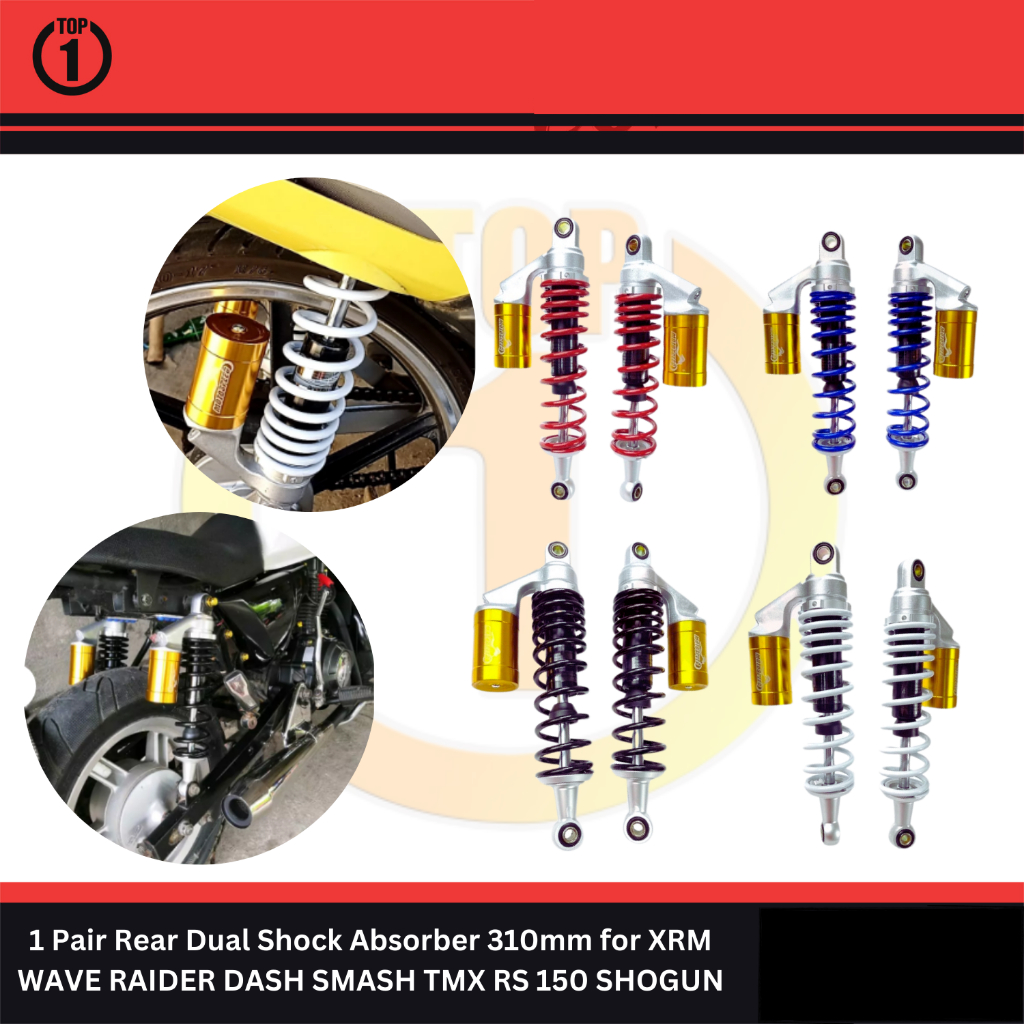 Top1 Motors 1 Pair Rear Dual Shock Absorber 310mm for XRM WAVE RAIDER DASH SMASH TMX RS 150 SHOGUN