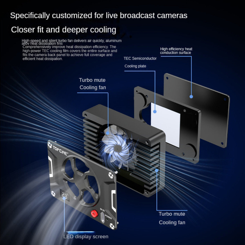 Topcine Camera Cooling Fan for Sony A7IV ZVE1 A6700 A7C2 AVE10 ZV1 A7C Canon R5 R6 R7 90D Fuji XT4