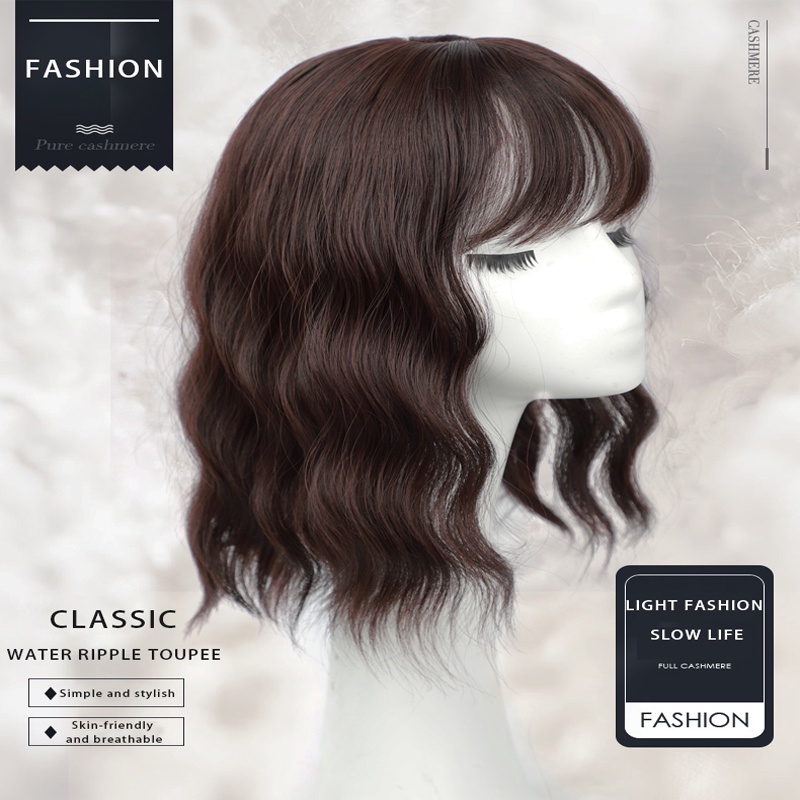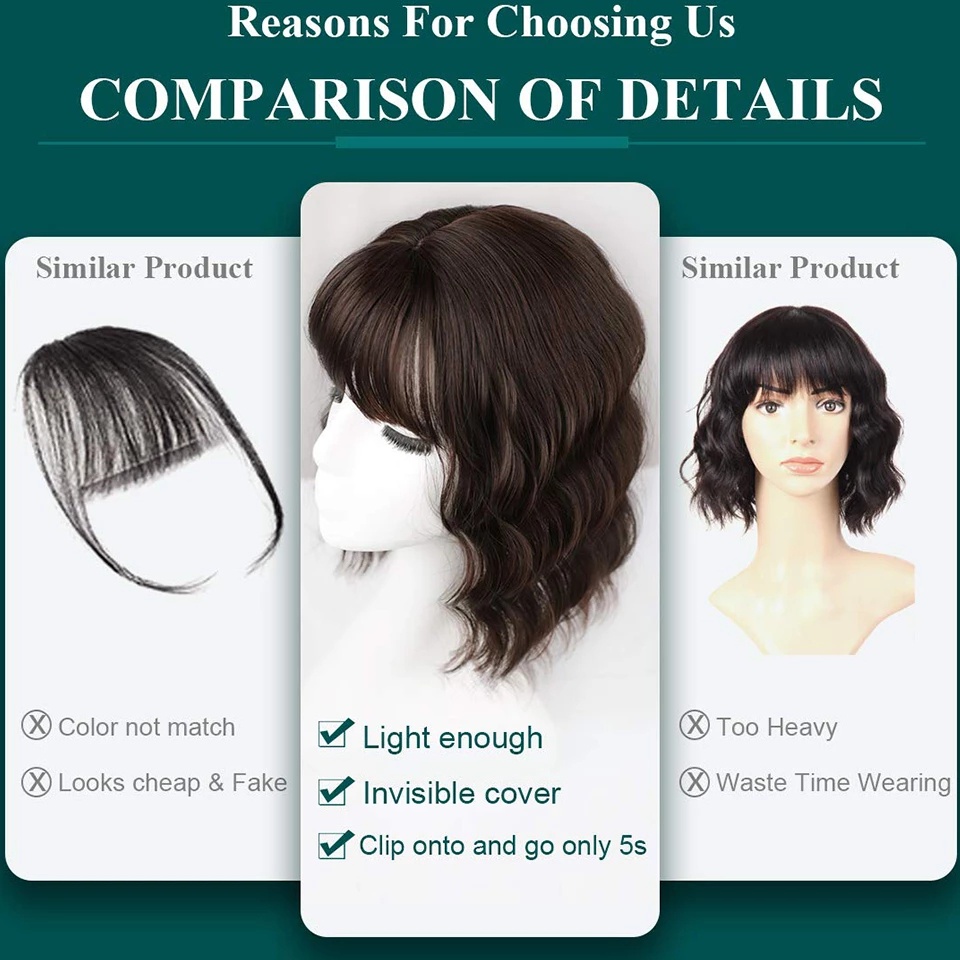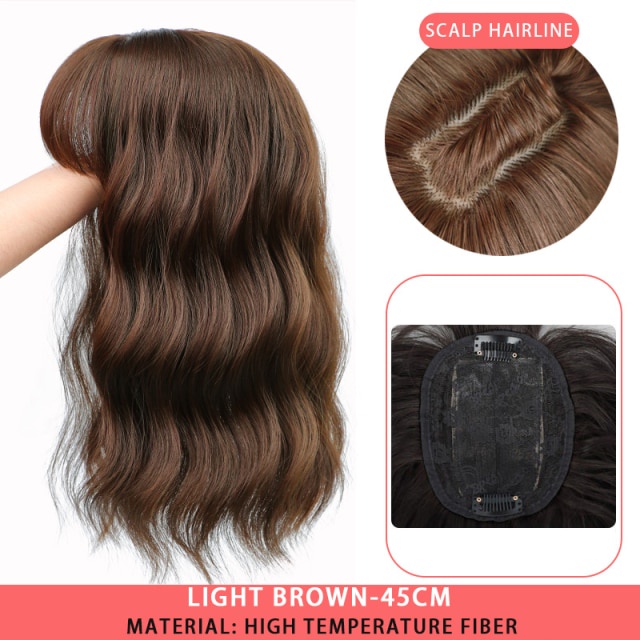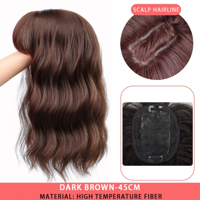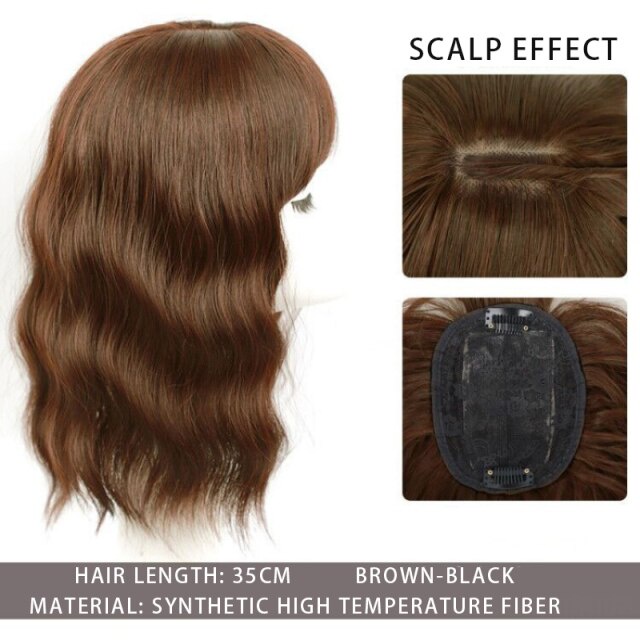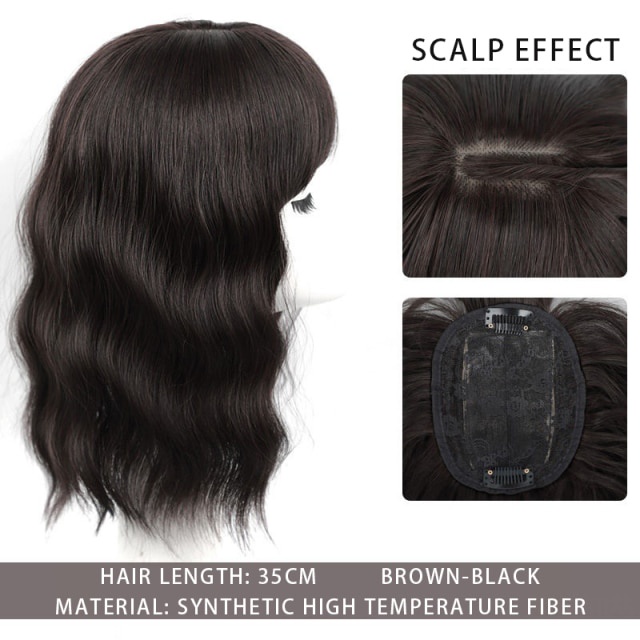 Topper Wig 2 Clip In Hair Extension Water Wave Hair With Bangs Fake Hair Hairpiece For Women Synthetic Women Toupee.