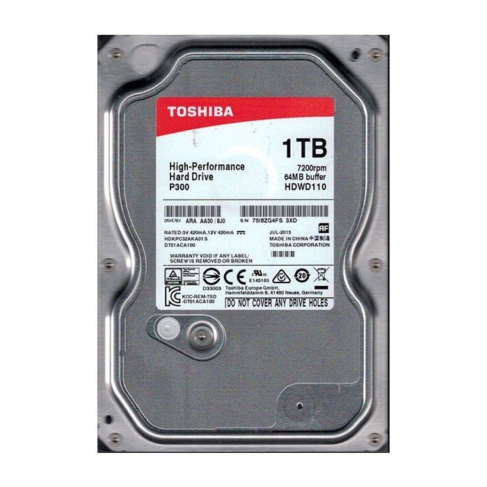 Toshiba 1TB Internal Hard Disk Drive HDD 3.5 SATA PC P300 | HDWD110 | JG Superstore
