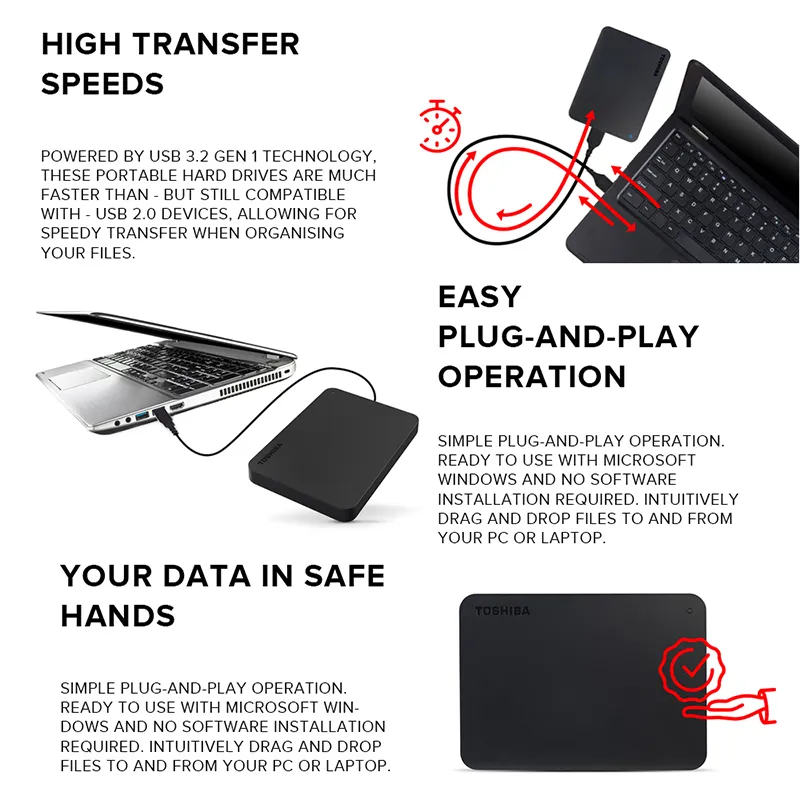 Toshiba External Hard Drive Original 1TB 2TB USB 3.0 Portable External Hard Disk Portable 2.5" Hard