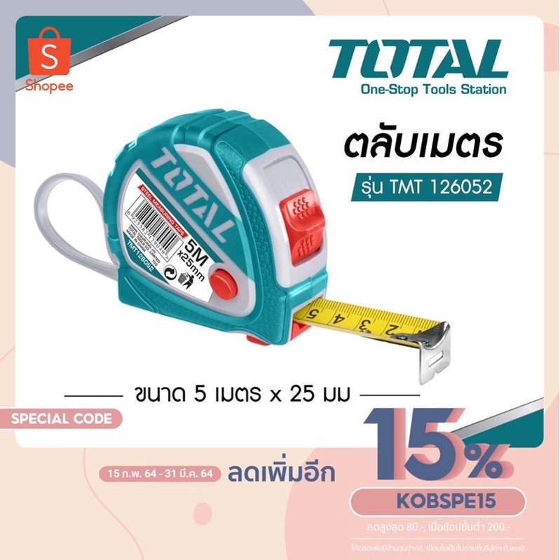 Total Good Quality Measuring Tape Industrial Grade Size 5 Meters x 25 Mm. Model TMT126052E (Tape Rule)