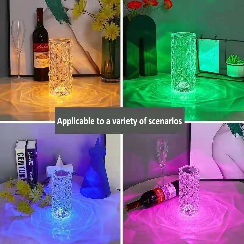 Touch Night Light 16 Colors Desk Lamp Rose Crystal Diamond Table Lamp Remote Control
