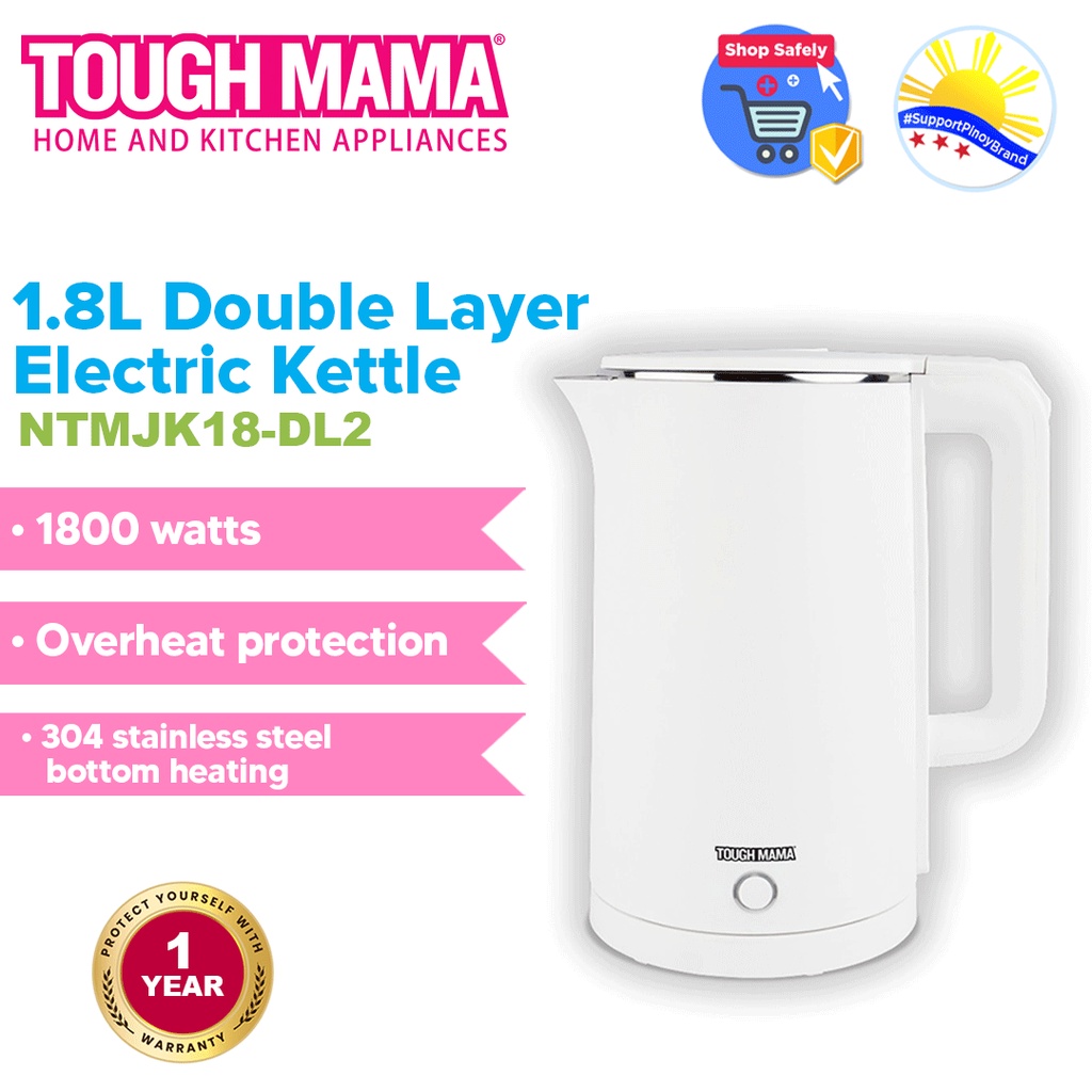 Tough Mama 1.8L Electric Kettle NTMJK18-DL2 Double Layer WHITE