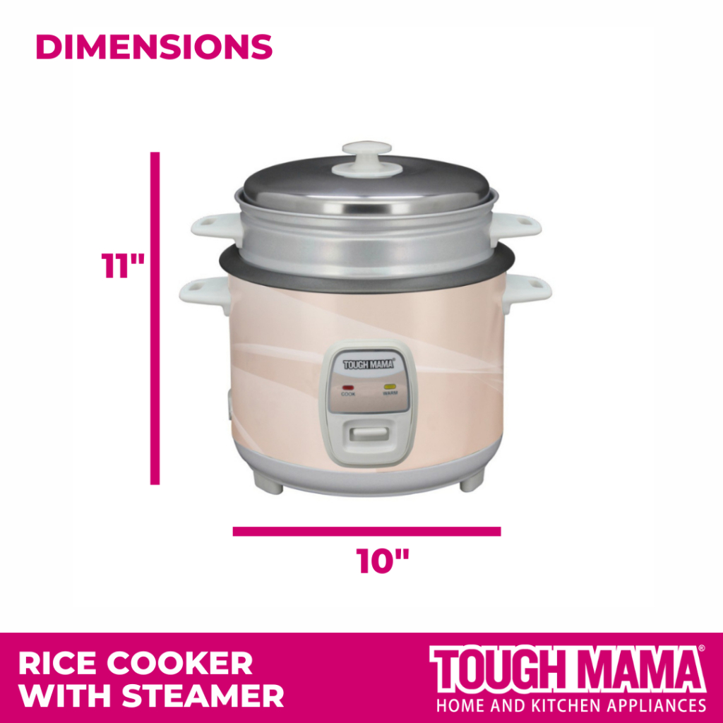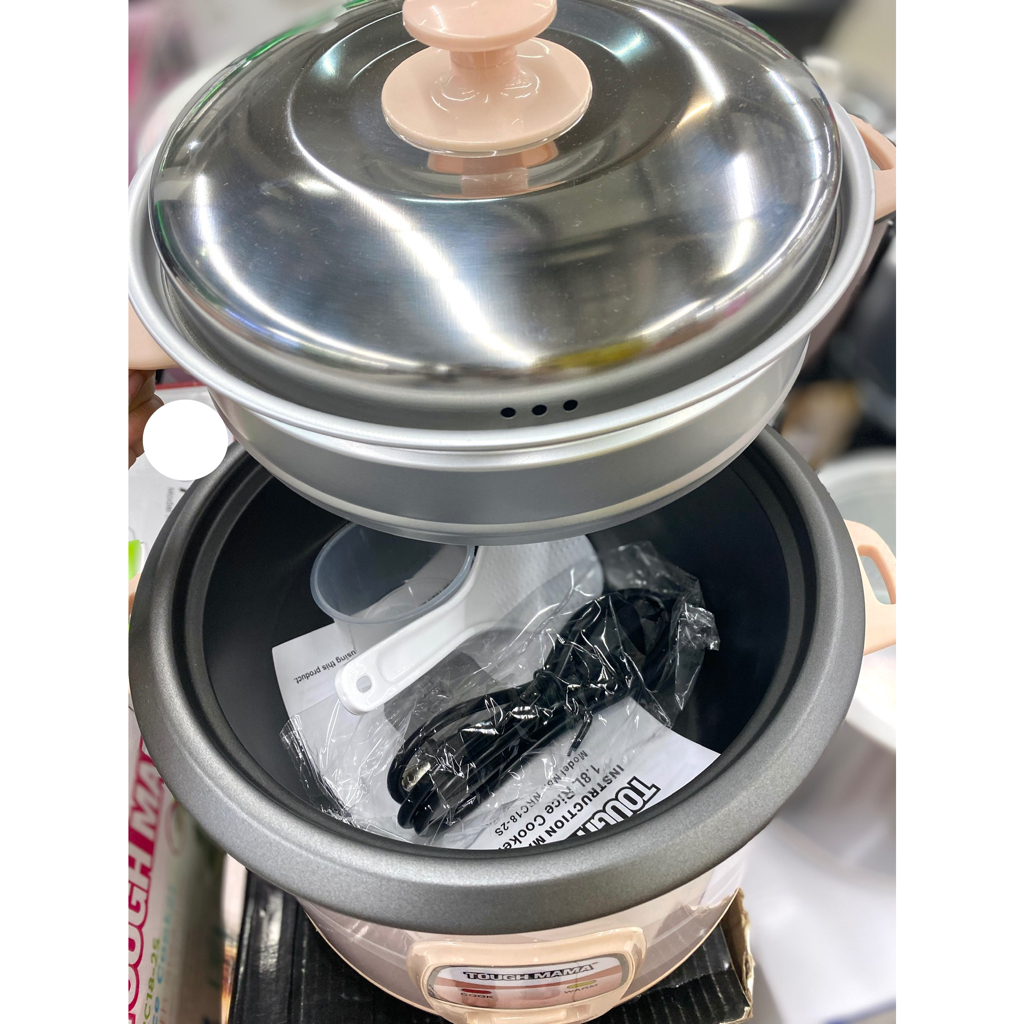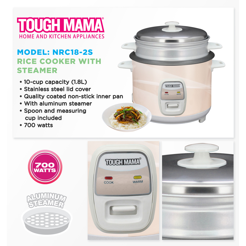 Tough Mama NRC18-2S Light Brown Rice Cooker with Steamer Non-stick 1.8L Beige Minimalist Design