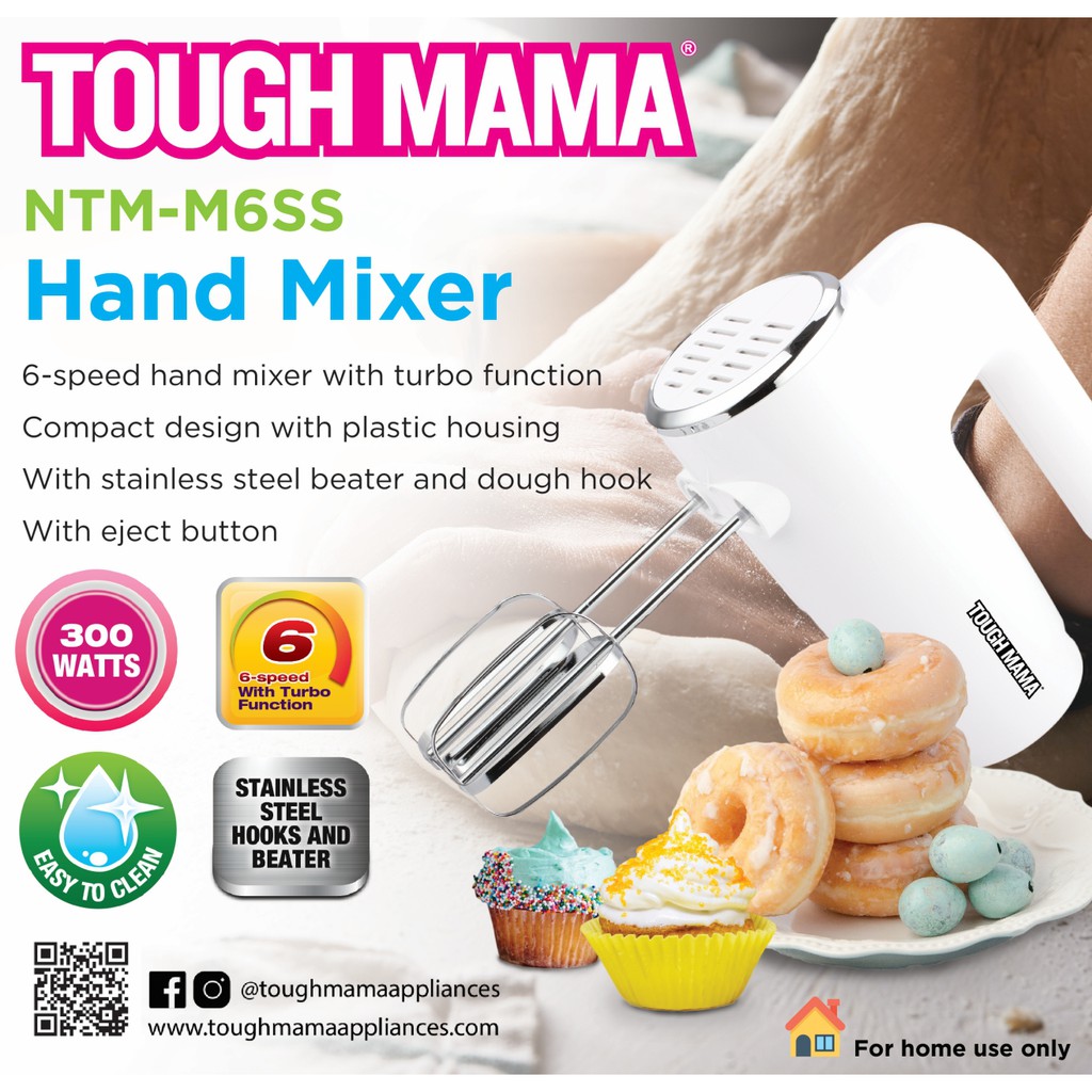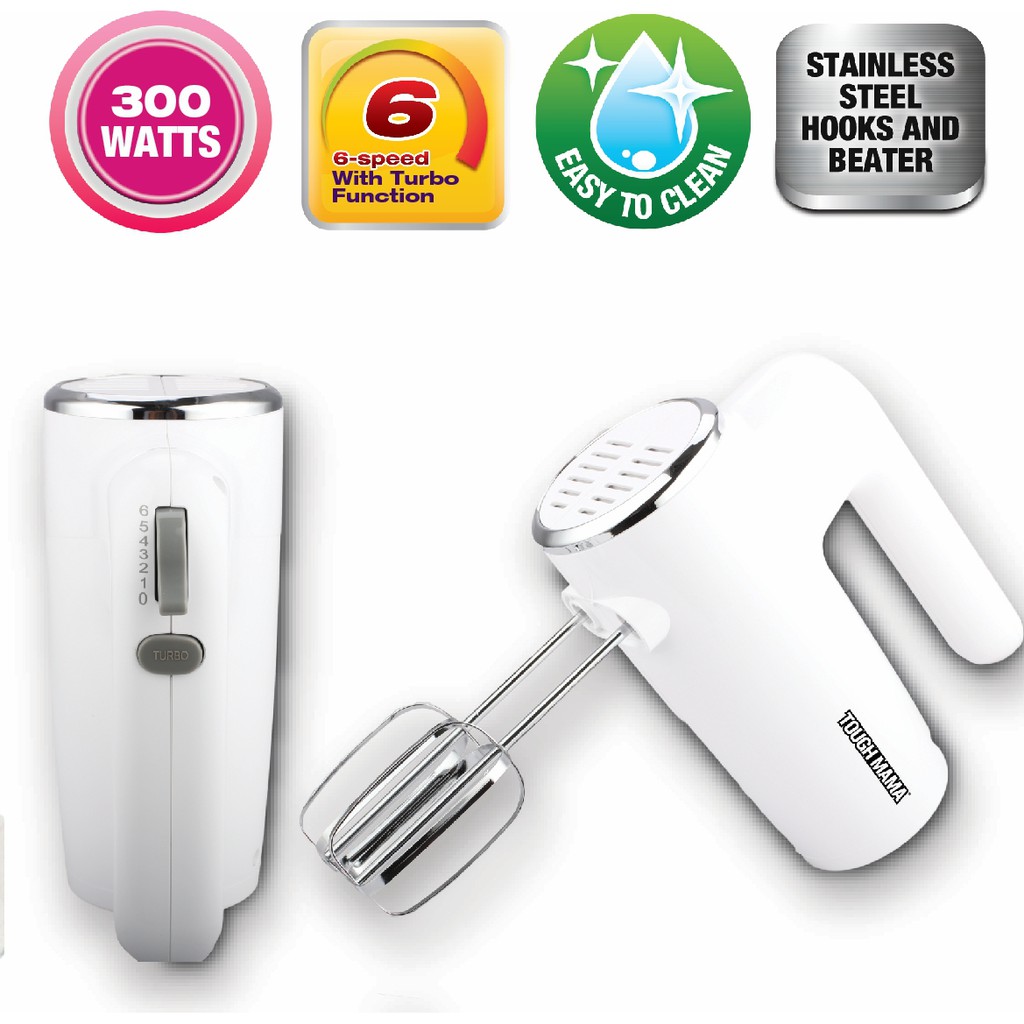 Tough Mama NTM-M6SS White Hand Mixer Turbo function Stainless steel beater and dough hook