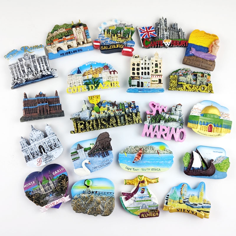 Tourist Souvenirs Refrigerator Magnets Norway Switzerland Israel Holland Salzburg Monaco Resin Fridge Stickers