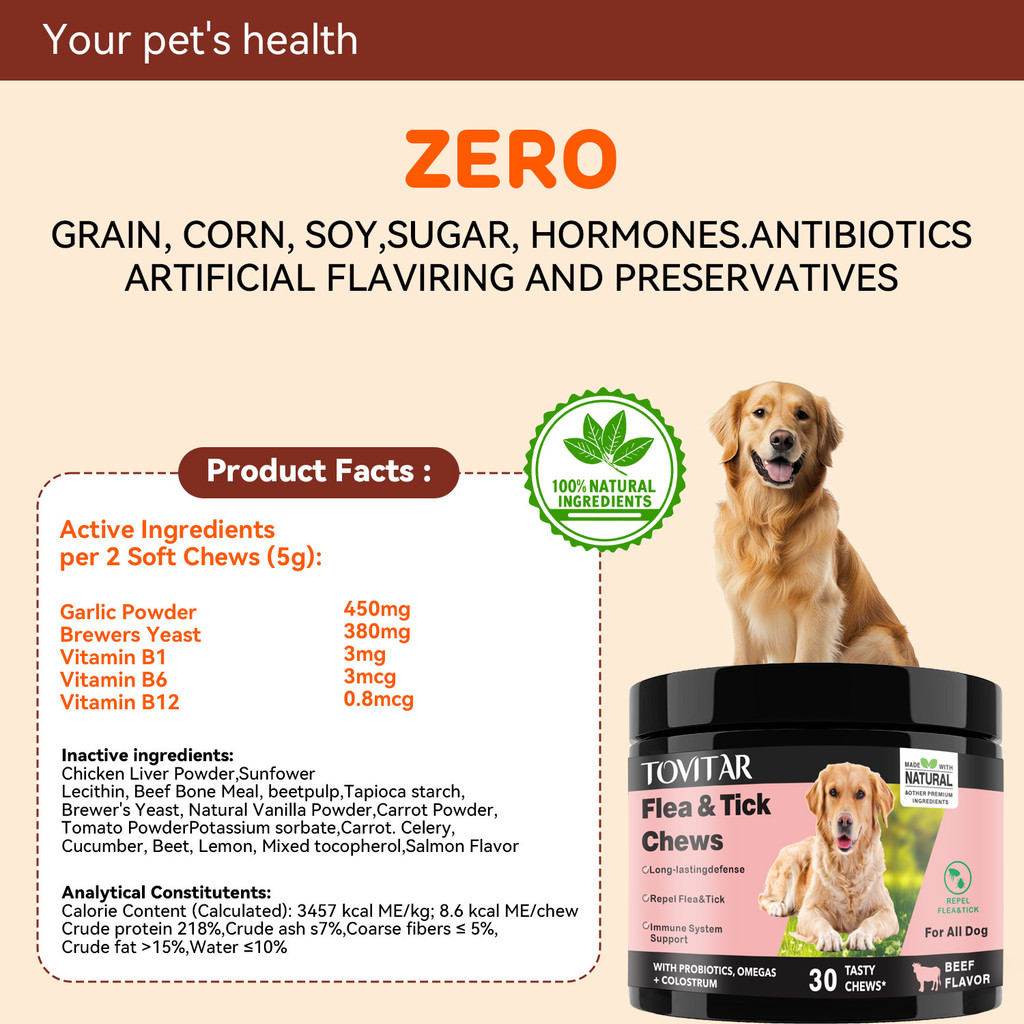 Tovitar Health Soft Chew for Dogs Preventive Support for Long-lasting Protection Against Fleas and Ticks