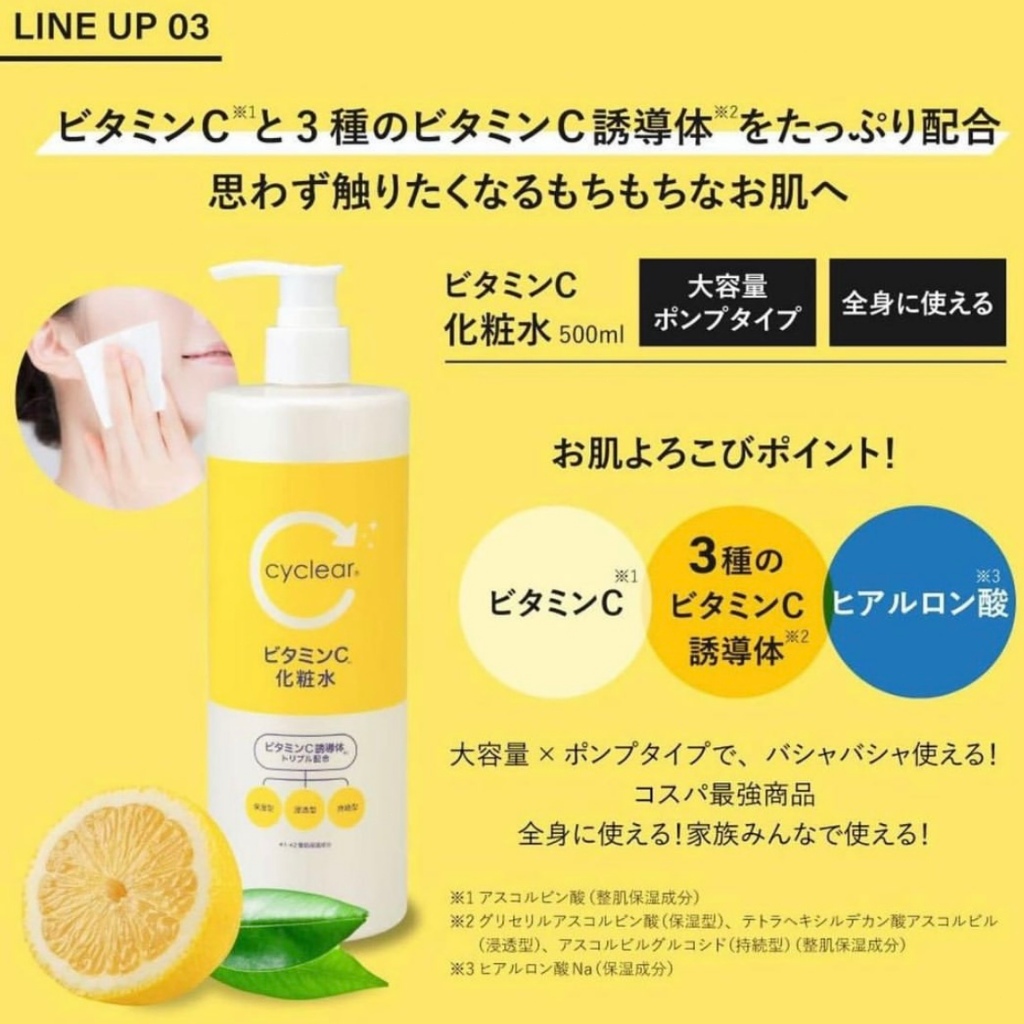 【JAPAN】Cyclear VITAMIN C- Sun Cream-Lotion-Enzyme Face Wash-Body Soap TONE UP UV SPF50+ Essence