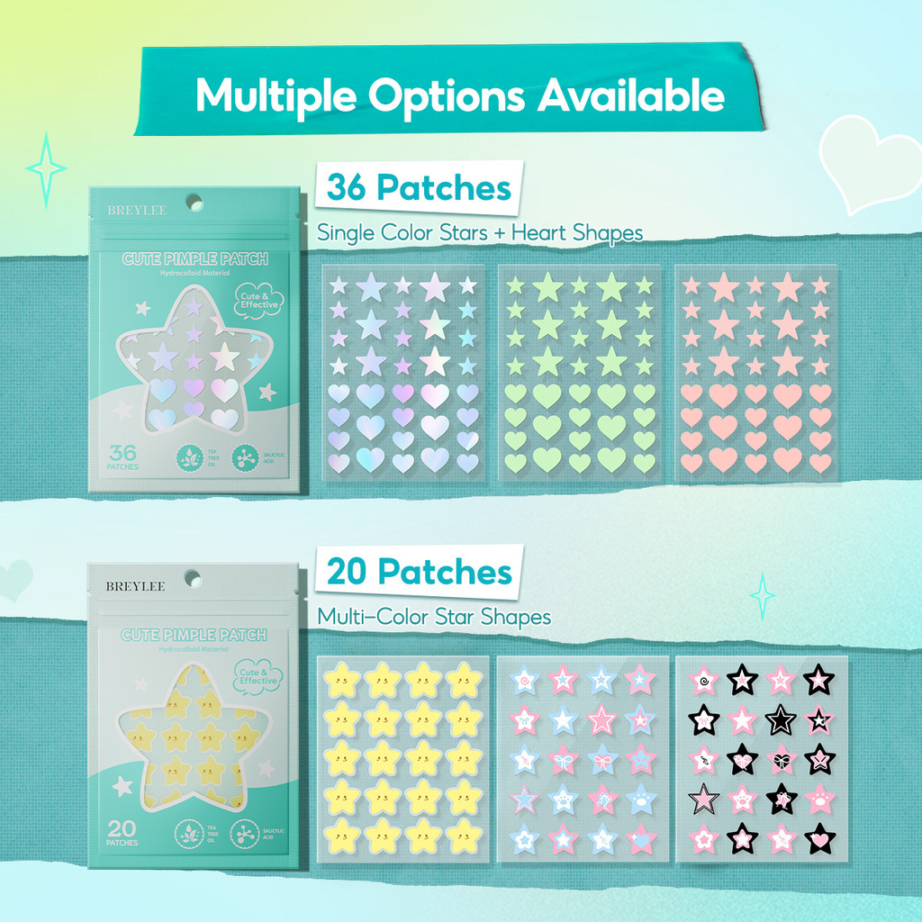 Breylee Acne Patches Acne Treatment Hydrocolloid Patch Pimple Patch Salicylic Acne Pimple Stickers Patch Star Acne Mask Face Skin Care