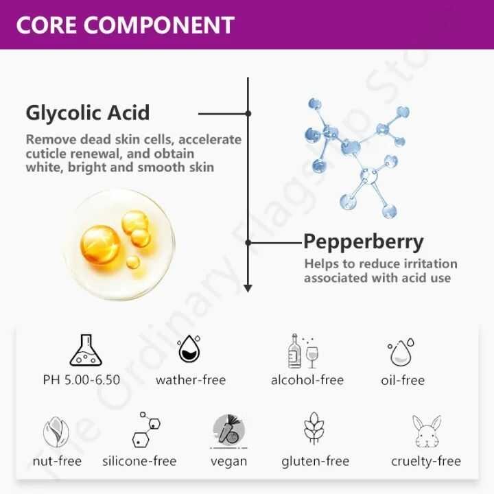 The Ordinary Glycolic Acid Whitening Scrubs Exfoliators Makeup Remover Exfoliating Brightening Pore