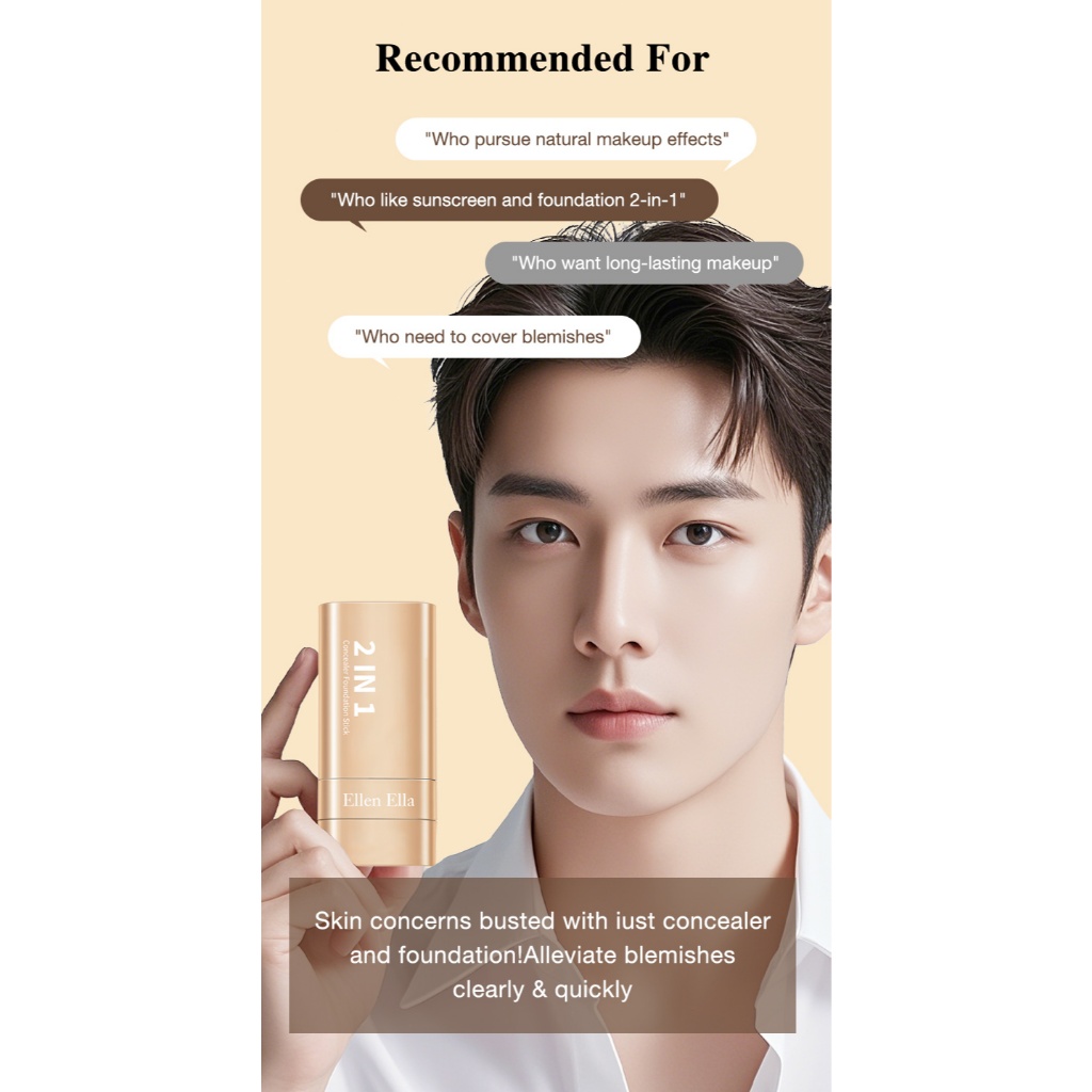 [Ready] ELLEN ELLA 2 in 1 Concealer Foundation Stick for Men Oil Control Waterproof Finish Matte