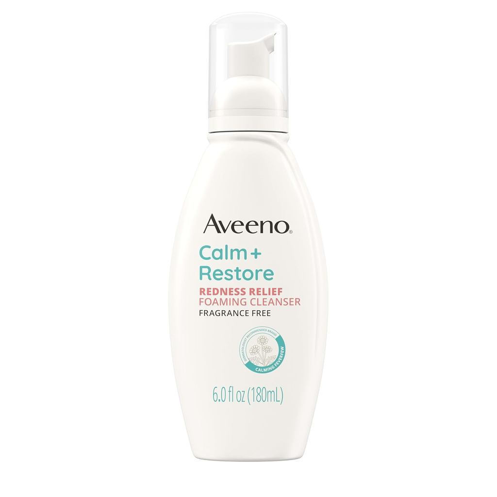 Aveeno Soothing & Restoring Foaming Facial Cleanser,Relieve redness,Daily facial cleanser,Contains soothing white jasmine ingredients,Helps reduce redness,Hypoallergenic。