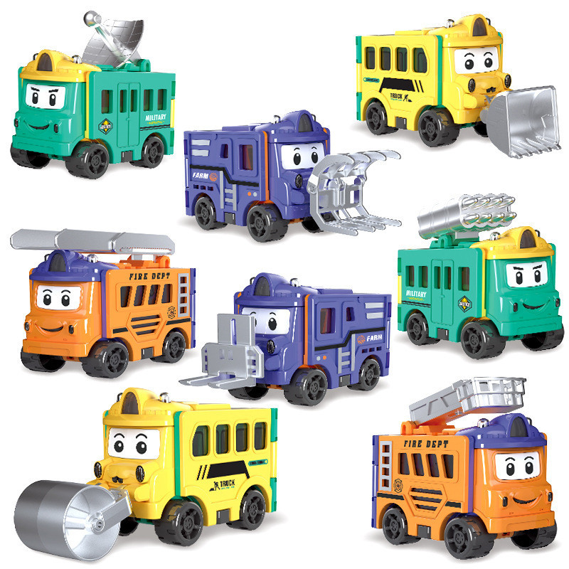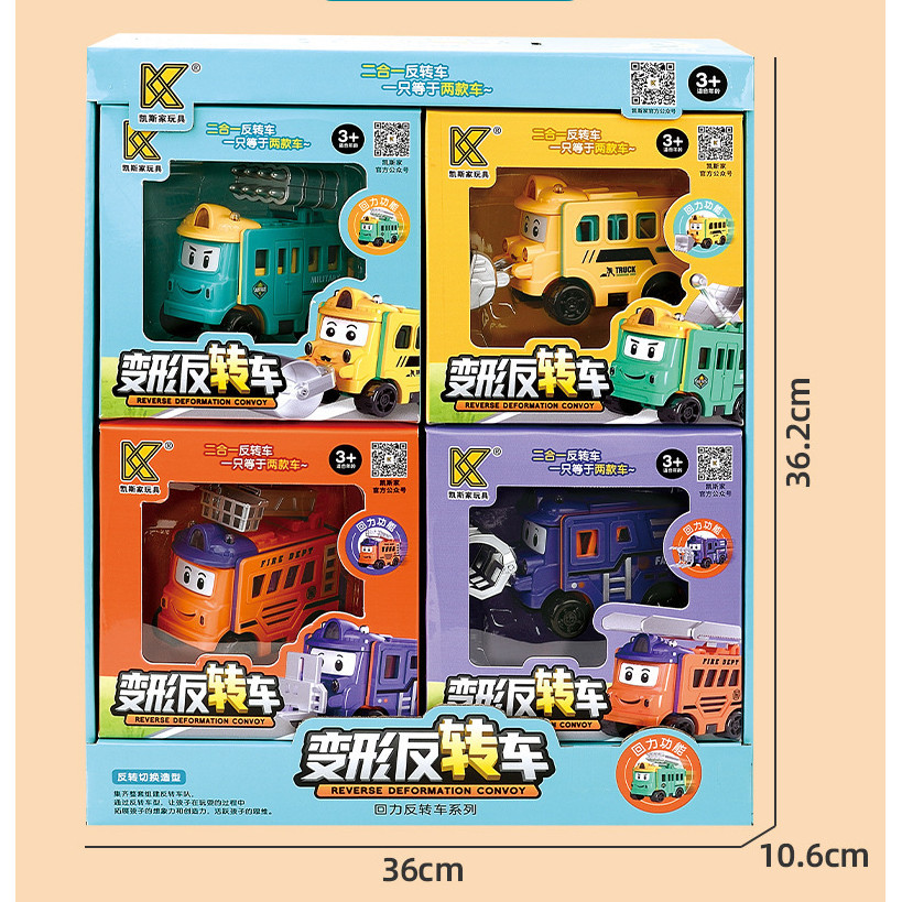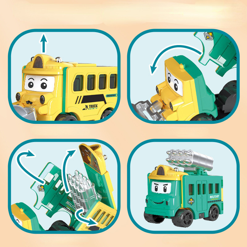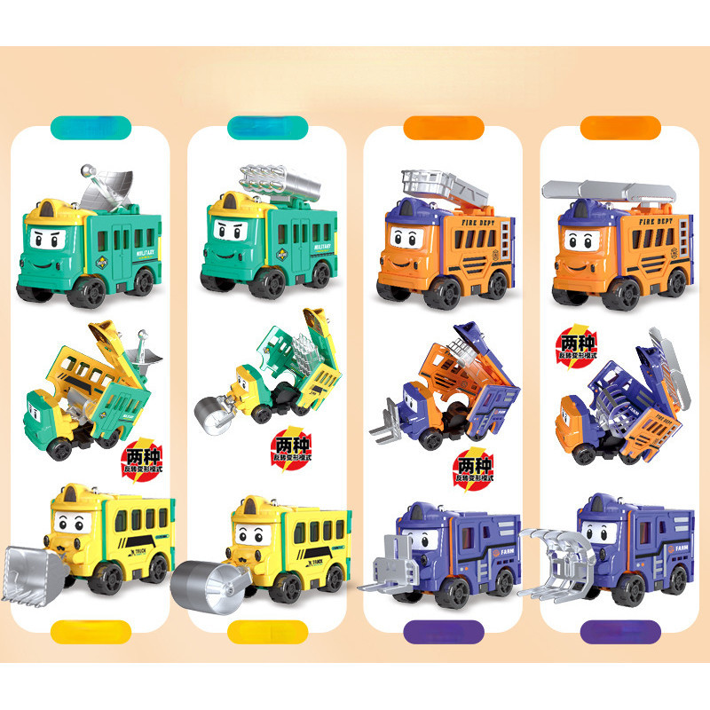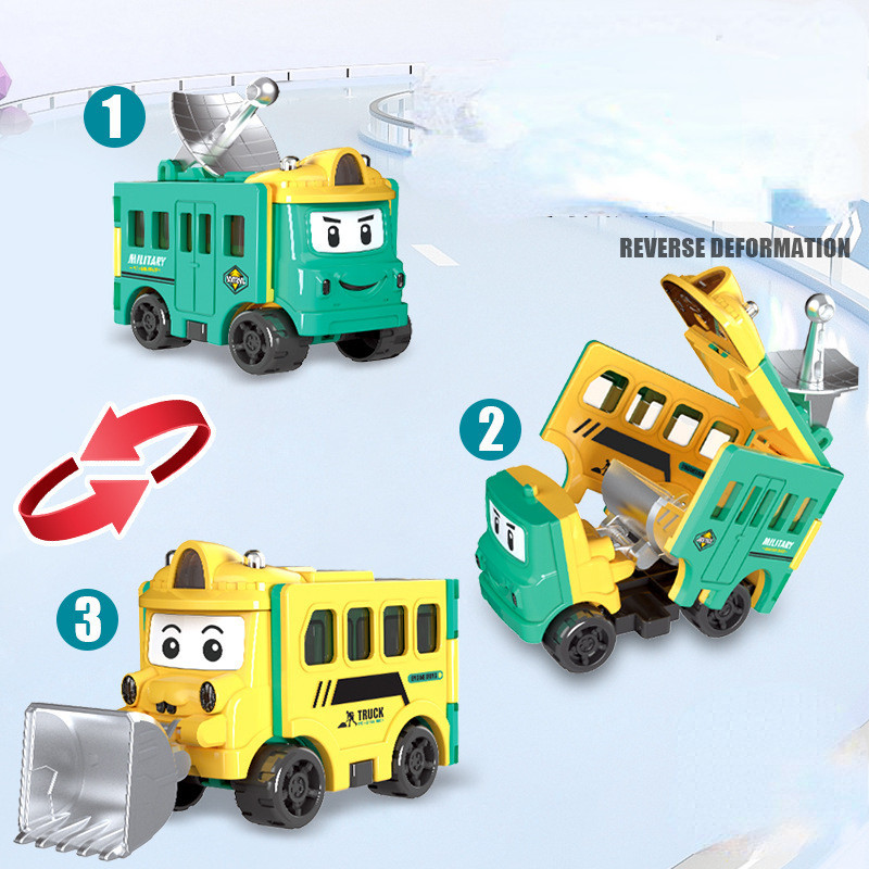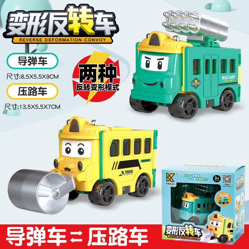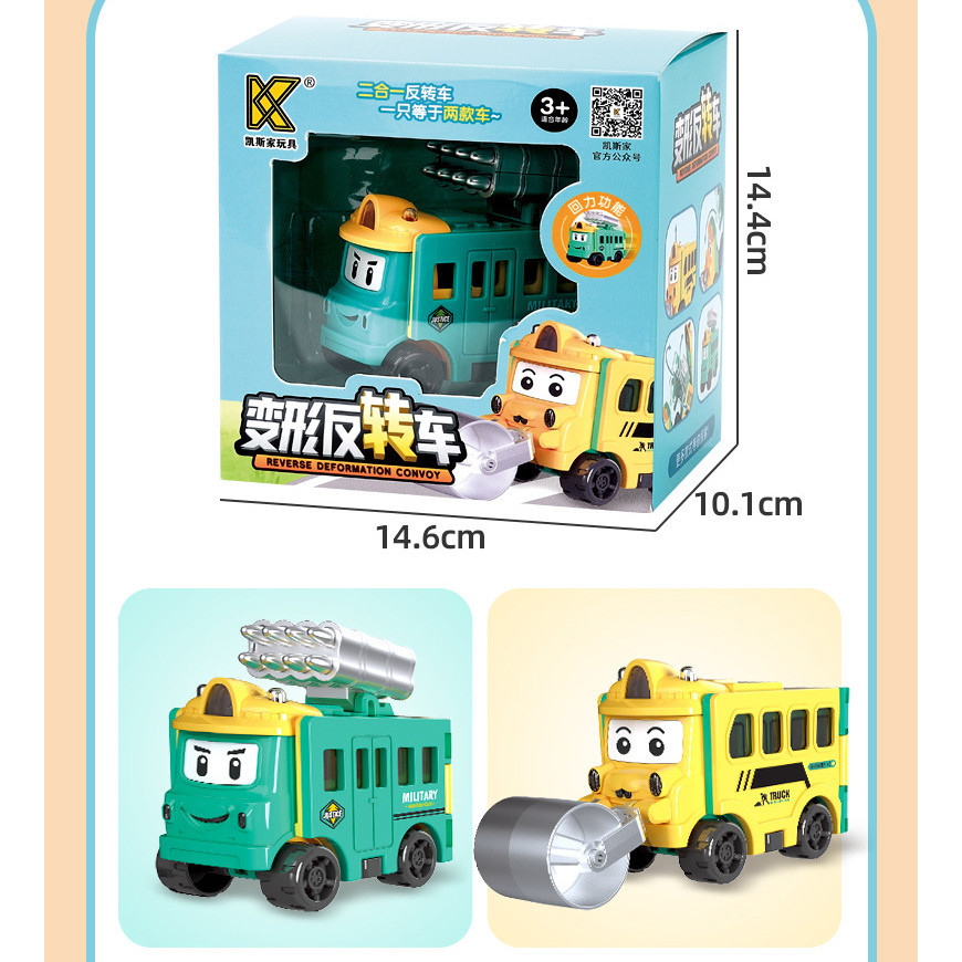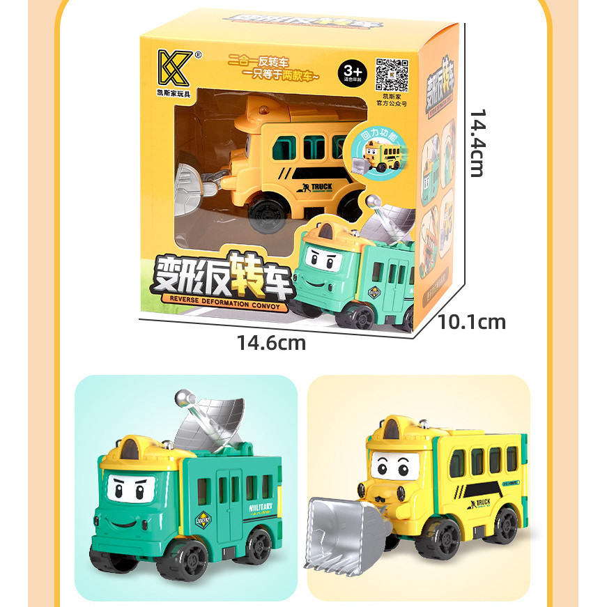 Toy Car Transforming Car Pull Back Car Flip Transforming Engineering Vehicle Car School Bus Children's Toy Gift
