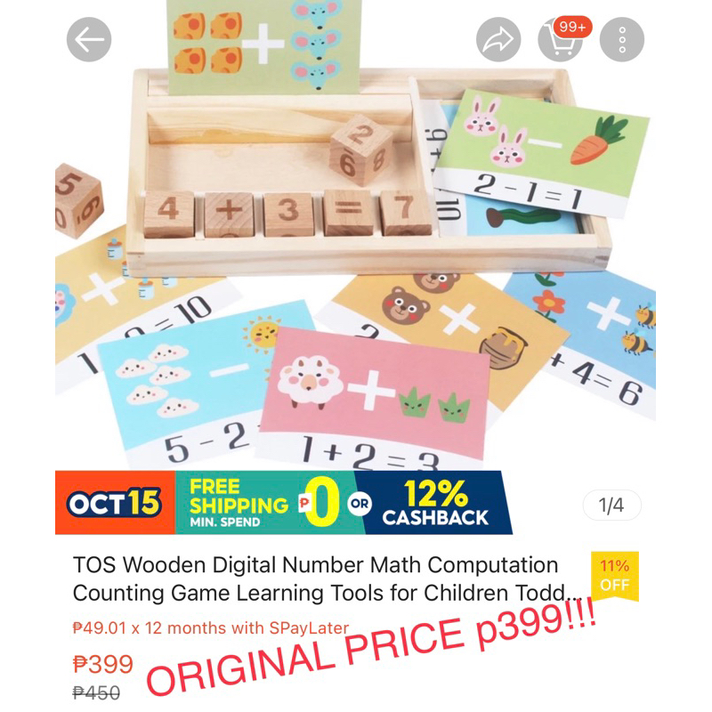 Toy Educational Wooden Math blocks montessori nursery kinder numbers math counting addition subtract