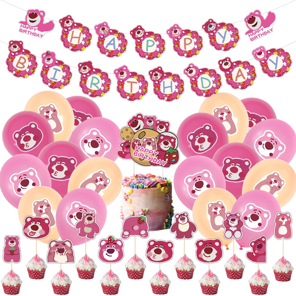 Toy Story Lotso Strawberry Bear Balloons banner cake toppers Birthday Party Decoraion Kids Children Party Supplies