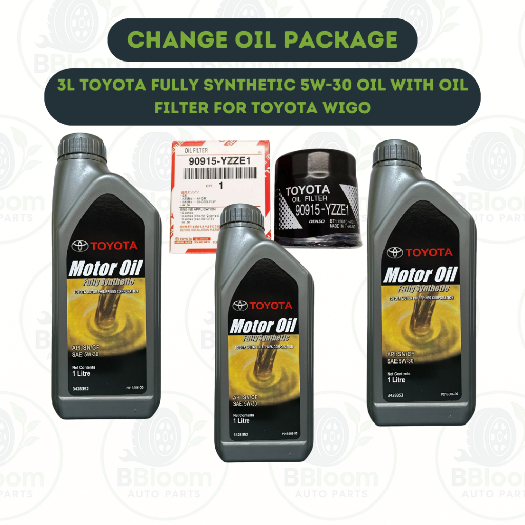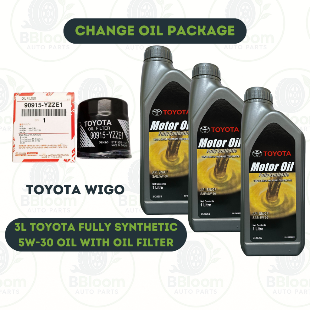Toyota 5W-30 Fully Synthetic Engine Oil [3 Liters + Oil Filter] Change Oil Package for Wigo