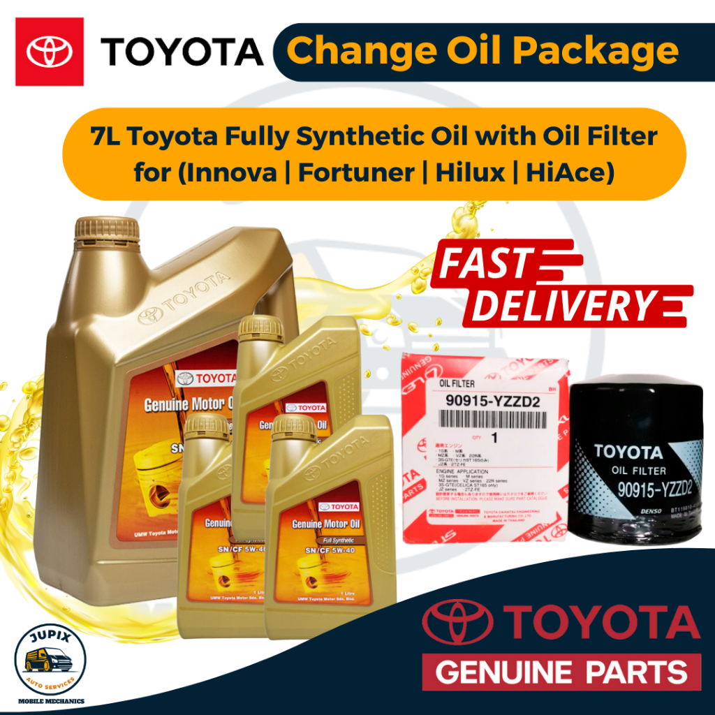 Toyota Fully Synthetic Engine Oil 5W-40 [7 Liters + Oil Filter] Oil Change for Diesel/Gas