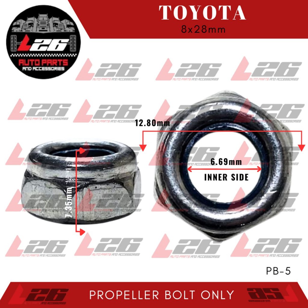 M8x28mm PROPELLER BOLT FOR Toyota / Fuso / Isuzu with Locknut PB-5