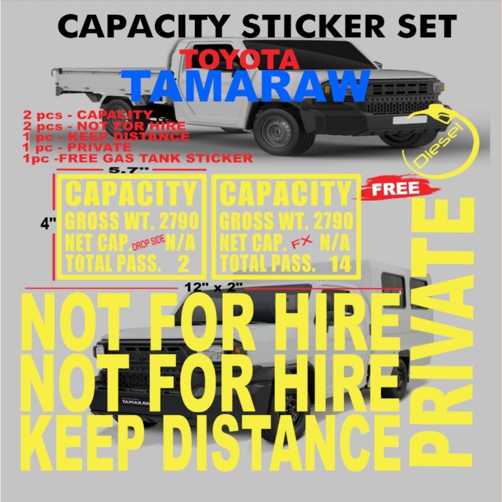 Toyota Tamaraw fx / Tamaraw dropside Capacity sticker set body sticker