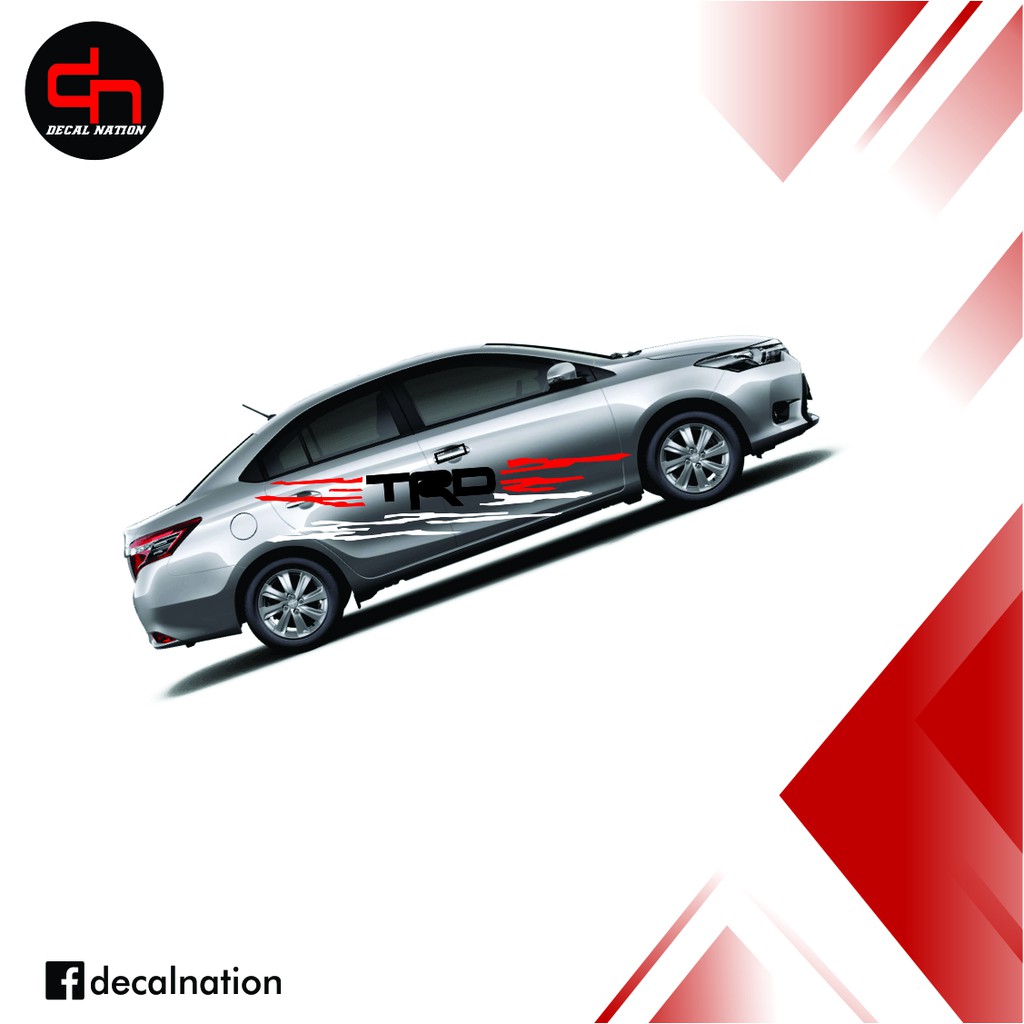 Toyota Vios Both Side Decals Cut Out Vinyl Sticker White, Black, Red Color
