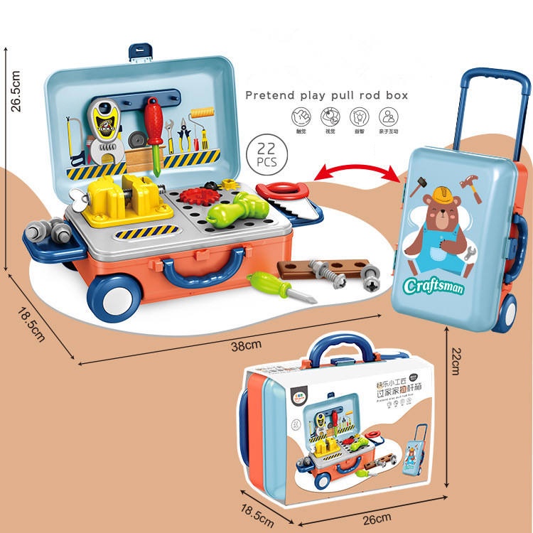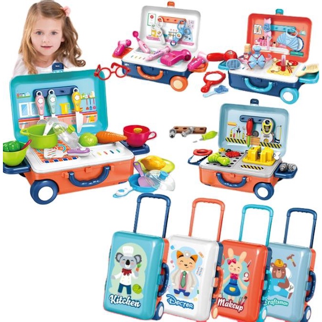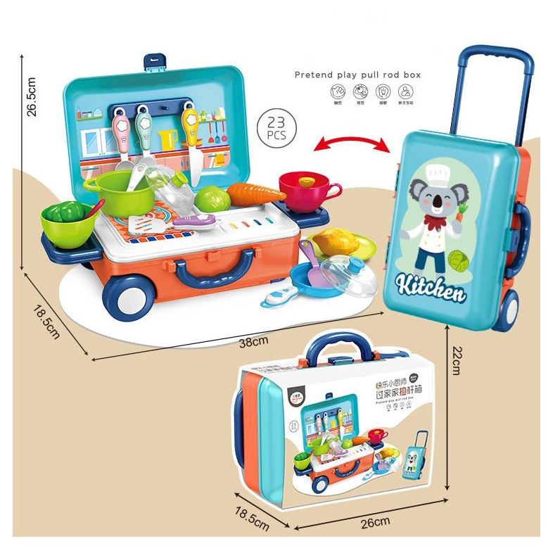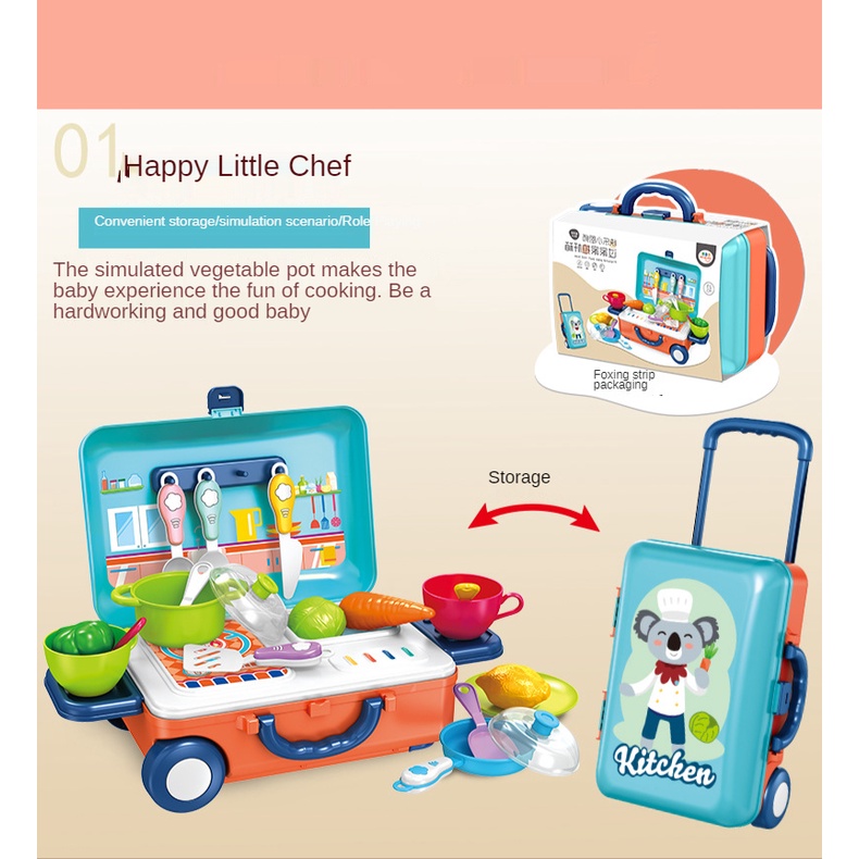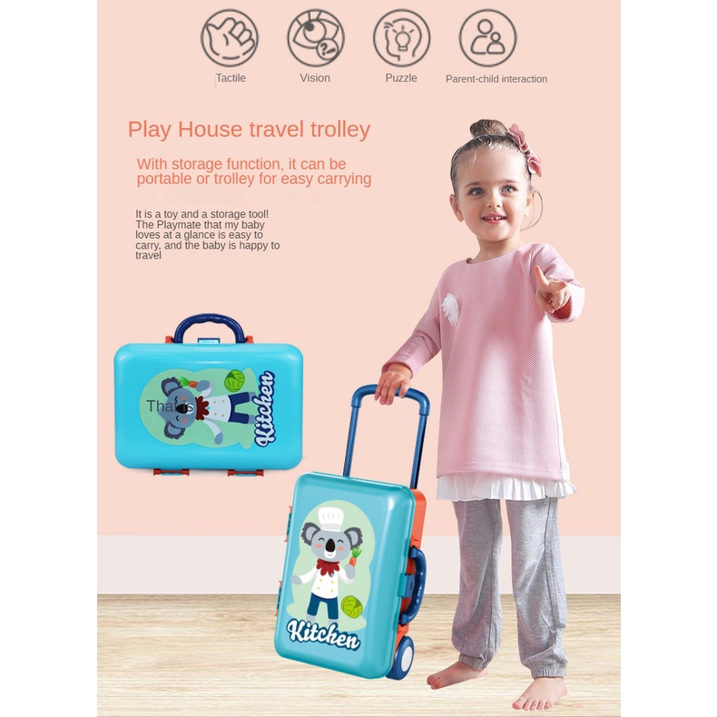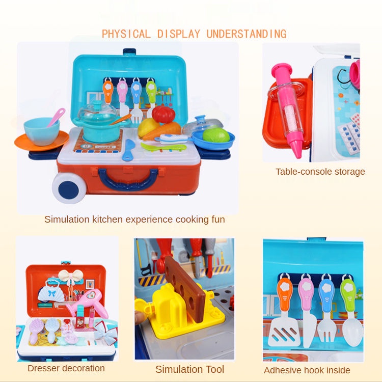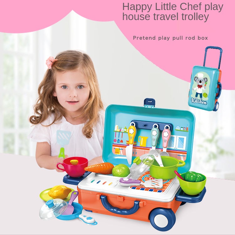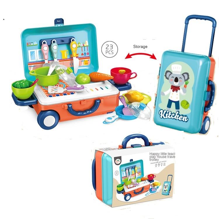 Toys For Kids 3 IN 1 Mini Trolley Case Kids Cooking Utensils Simulation Kitchen Cooking Play Toy
