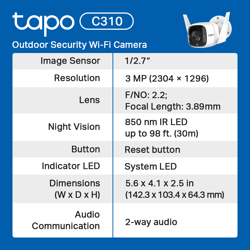 Tp-Link Tapo C310 Outdoor Wi-fi Security Camera Advance Night Vision Ultra-High Definition