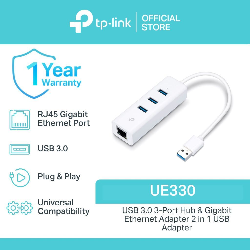 TP-Link | UE330 | USB 3.0 | 3-Port Hub | Gigabit | Ethernet | Adapter | 2 in 1 | USB | Adapter