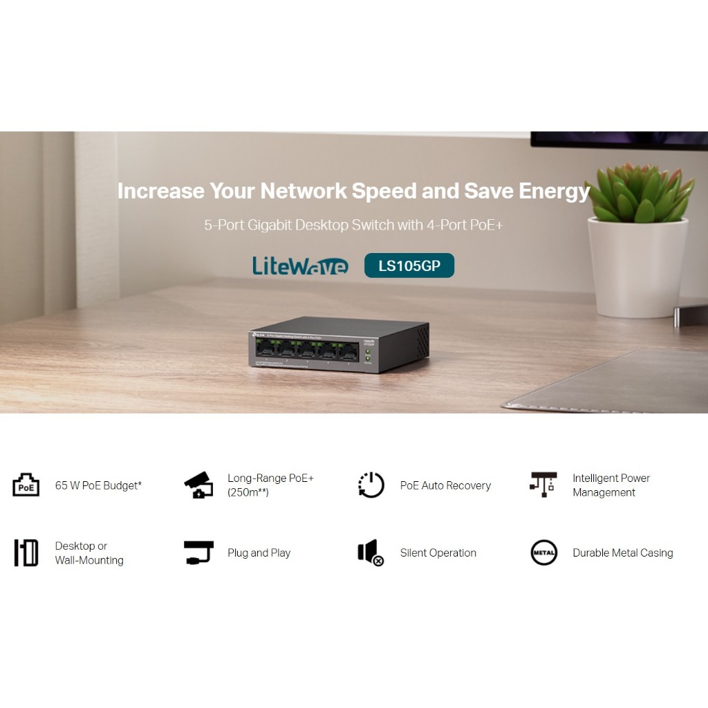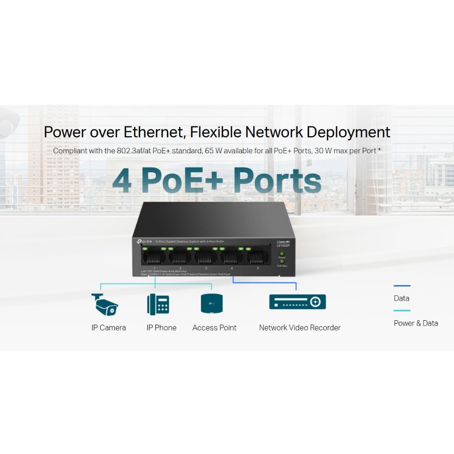 Tp-link LS105GP 5-Port Gigabit Desktop Switch with 4-Port PoE+